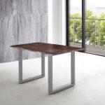 Baumkantentisch Lubin, Esszimmertisch 160 x 85 cm, Massivholz Akazie / Nussbaumfarben, Gestell Silber