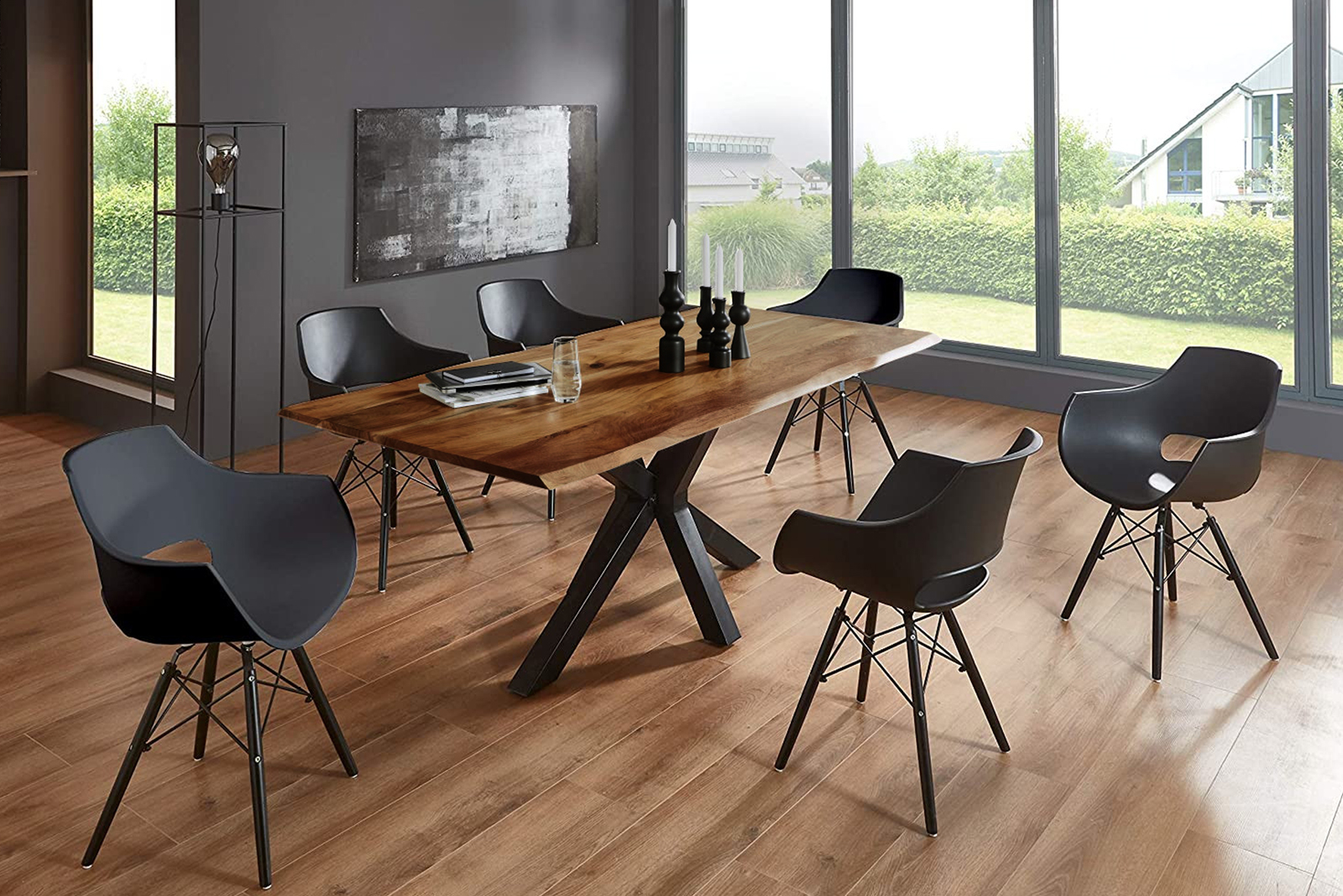 • Hochwertiger und trendiger Esstisch mit 26 mm dicker Holzplatte mit echter Baumkante.