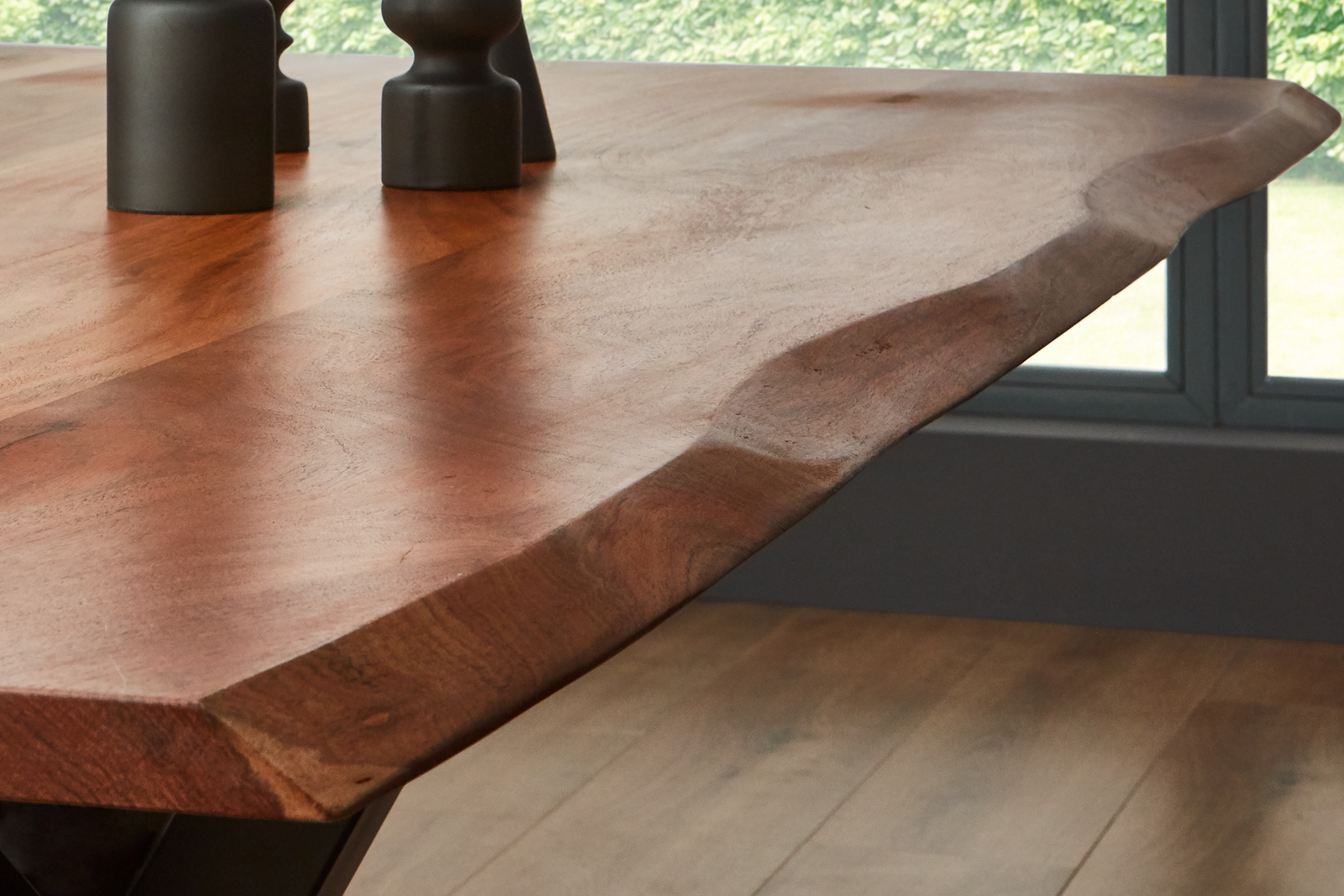 • Der Baumkantentisch ist gut geeignet für 6-8 Personen, je nach Stuhlbreite.