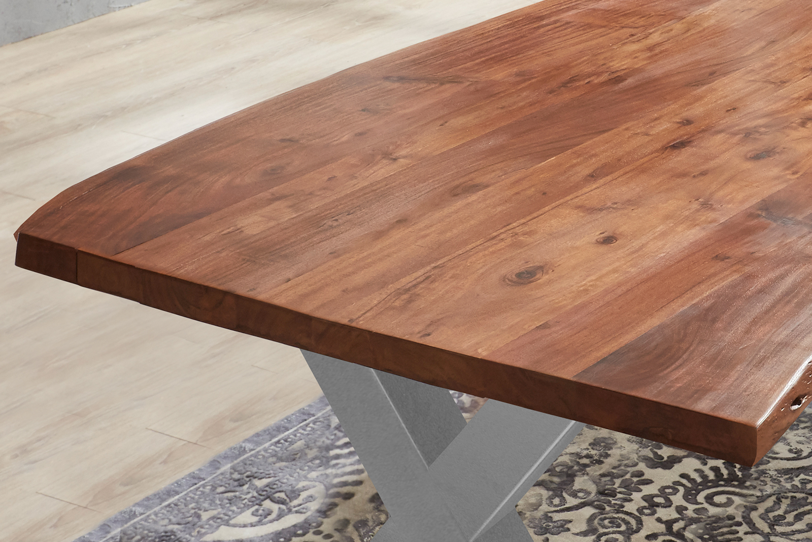 Baumkantentisch Xanten, Esszimmertisch 200 x 100 cm, Massivholz Akazie, nussbaumfarben / silber