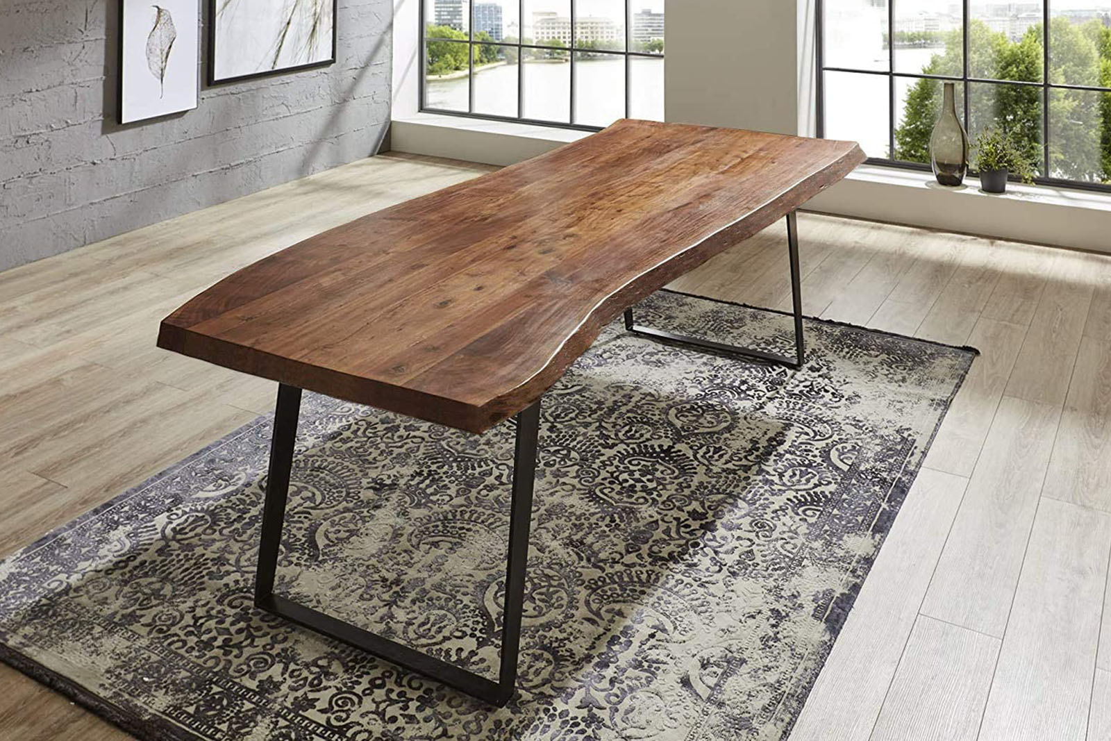 - Hochwertiger und trendiger Esstisch mit einer 47-55 mm dicker Holzplatte mit echter Baumkante.