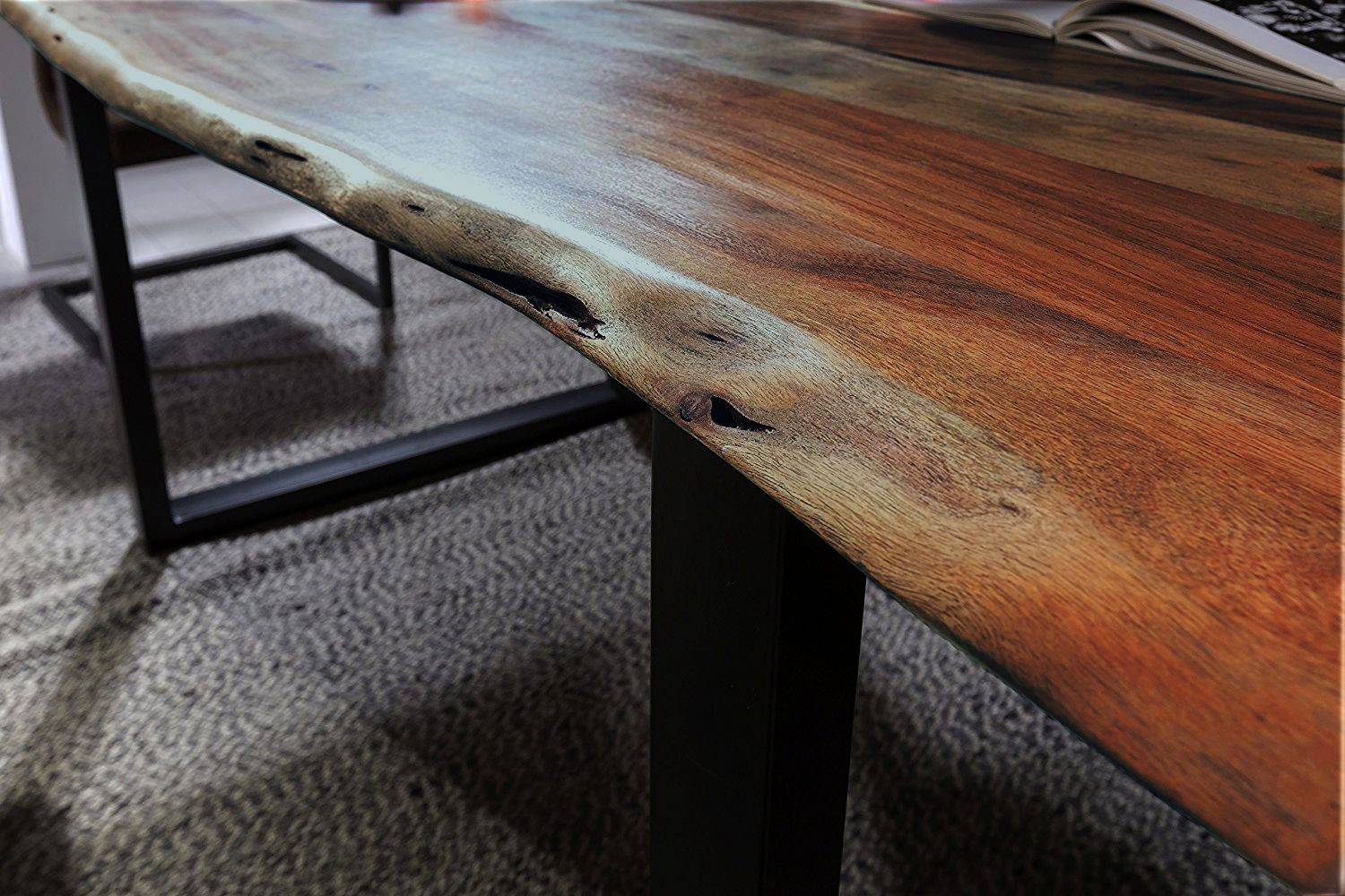 Esstisch Baumkante massiv Akazie nussbaum 220 x 100 schwarz MUNDRA