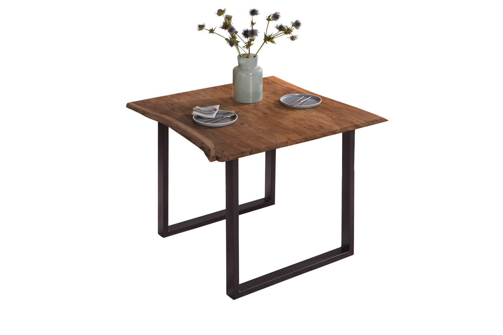 Baumkantentisch Billy, Esszimmertisch 90 x 90 cm, Massivholz Akazie, Nussbaumfarben / Schwarz
