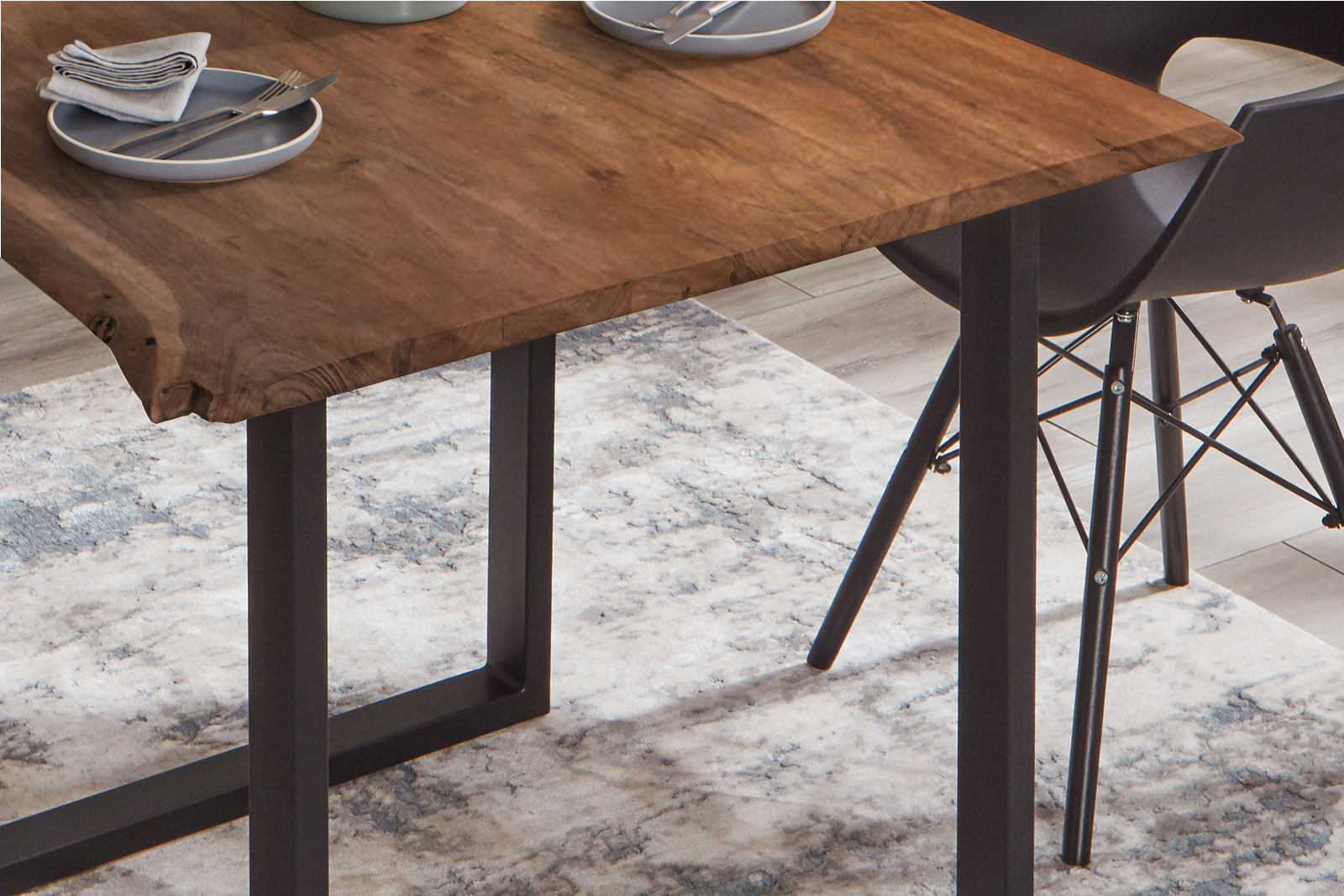 - Hochwertiger und trendiger Esstisch mit einer 26 mm dicker Holzplatte mit echter Baumkante.