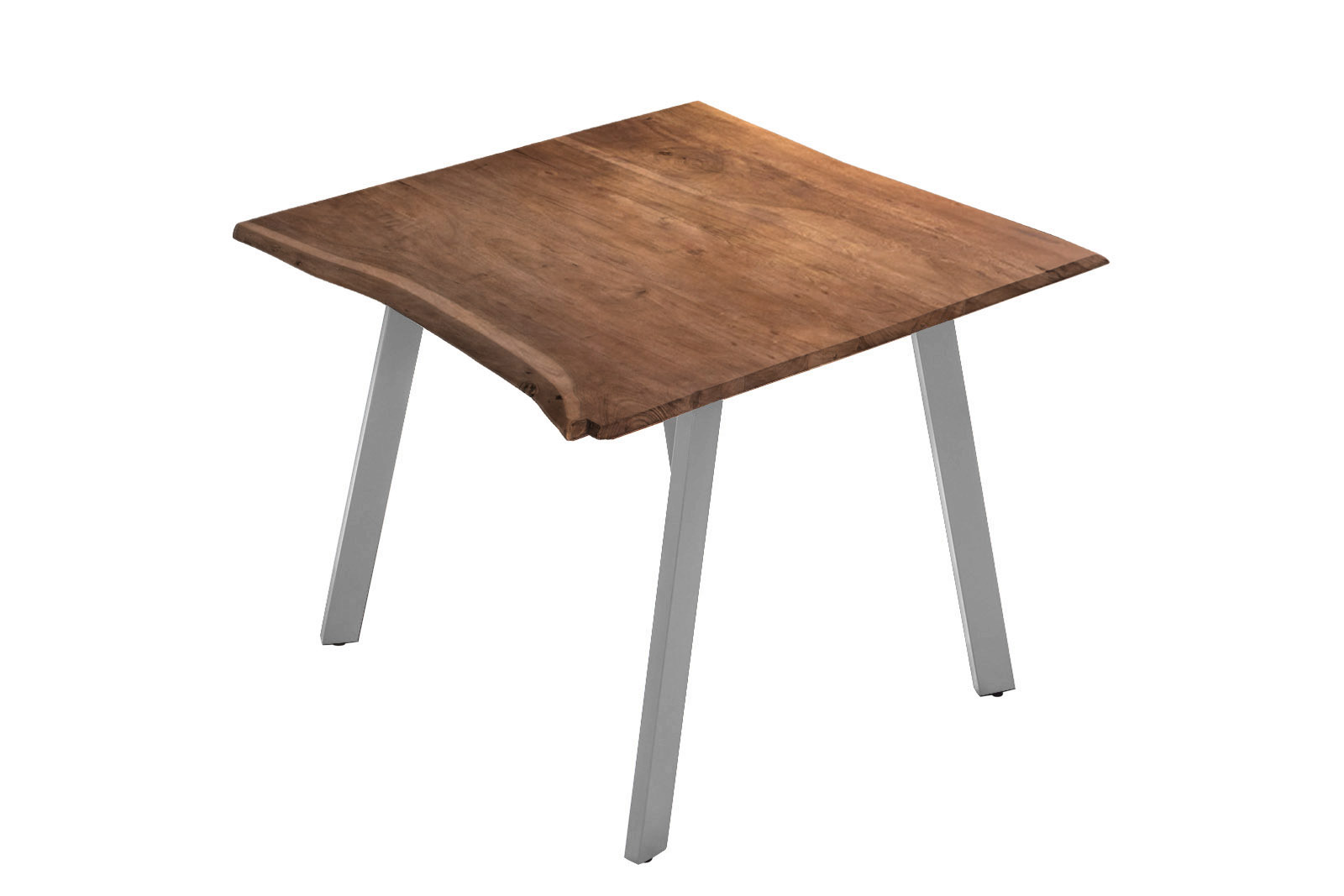 Esstisch Baumkante massiv Akazie Nussbaum 90 x 90 silber Laxmi