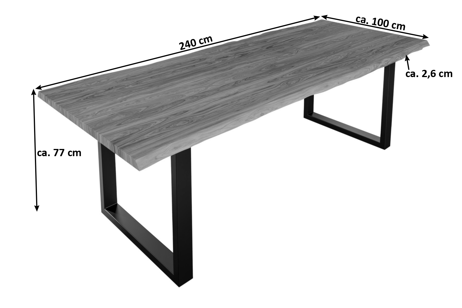 • Länge: 240 cm | Breite: ca. 100 cm | Gesamthöhe: ca. 77 cm | Tischplattenstärke: ca. 2,6 cm