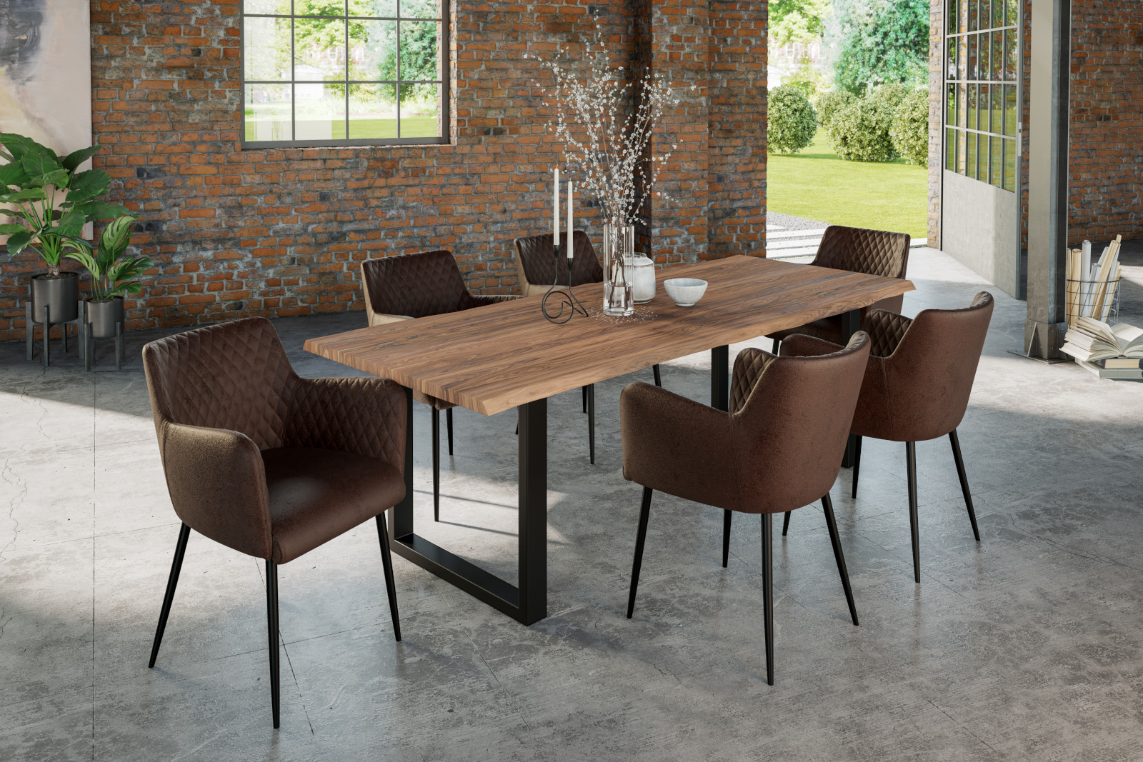 Akazienholz ist die Grundlage unseres Esszimmertisches Lauren. Im Herstellungsprozess werden einzelne Holzlamellen an ihren Längsseiten miteinander verleimt. Die Außenkanten der Tischplatte entsprechen der Form, in der ursprünglich der Baumstamm gewachsen ist. Damit ergibt sich ein stimmungsvolles und vor allem individualistisches Gesamtkonzept, abgerundet von den puristisch anmutenden Metallgestellen in U-Form.