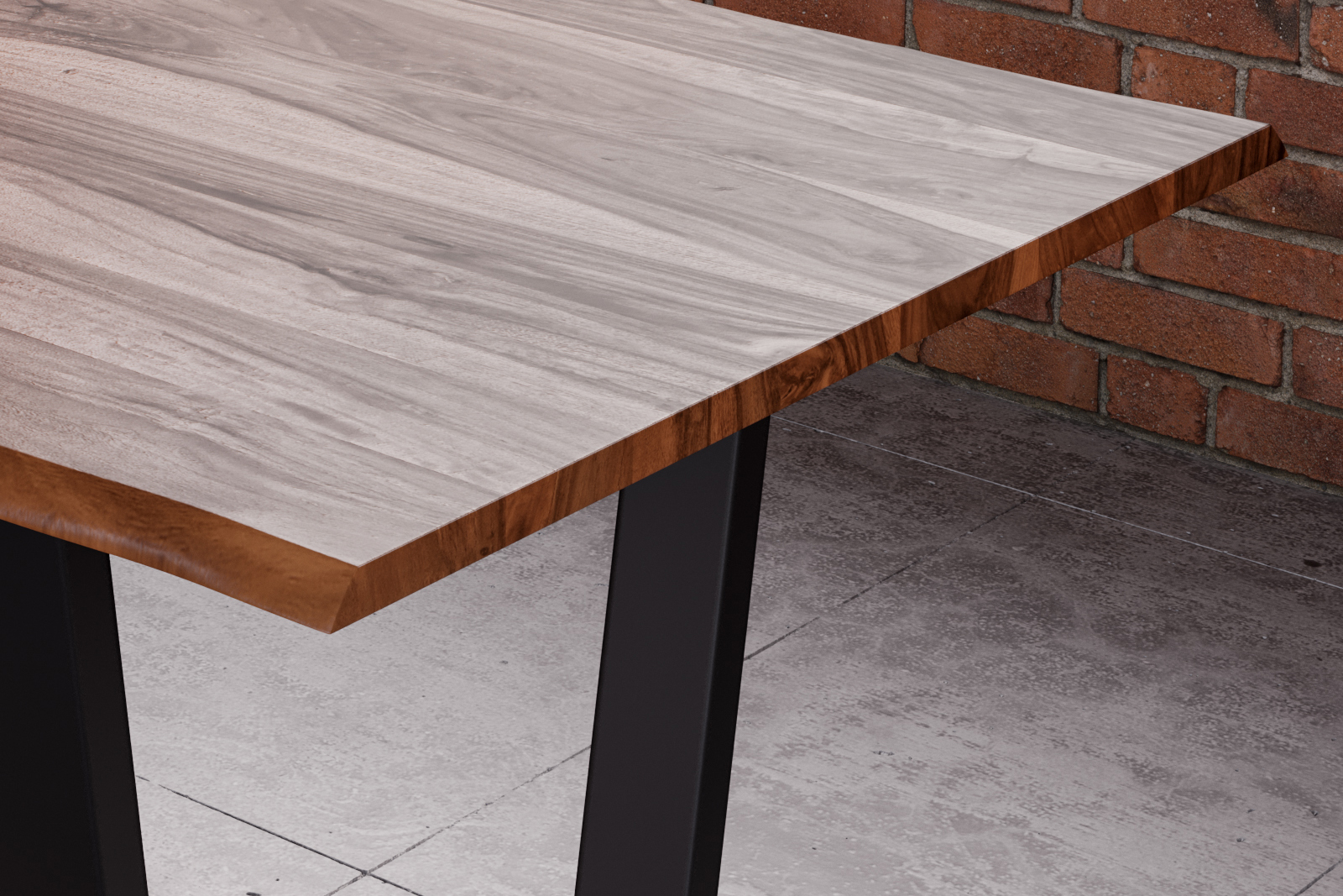 Natürliche & einzigartige Holzmaserung, V-Gestell in schwarz, jedes Exemplar ist ein Unikat