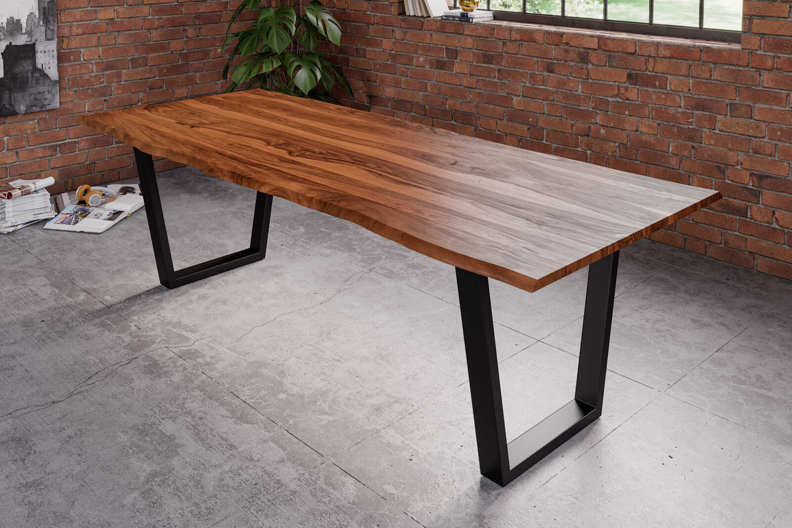 - Hochwertiger und trendiger Esstisch mit 26 mm dicker Holzplatte mit echter Baumkante.