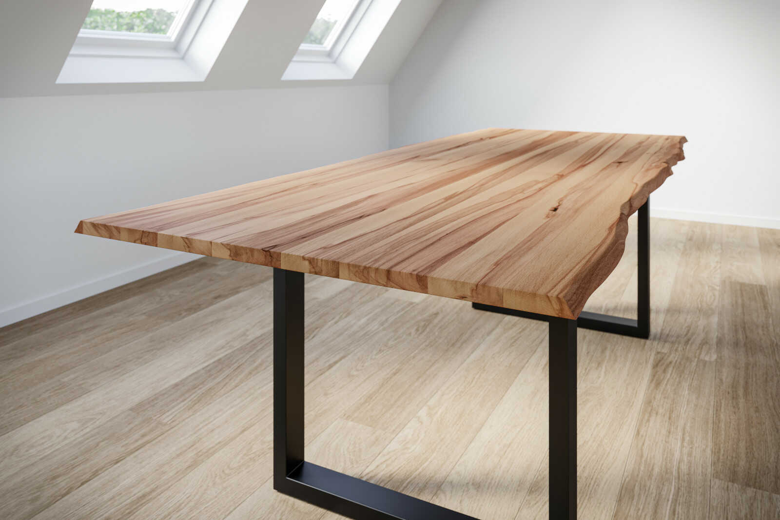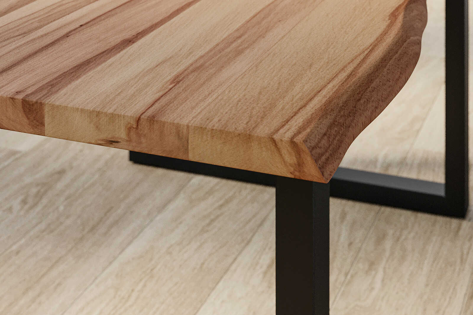 Baumkantentisch Gregor, Esszimmertisch 200 x 100 cm, Massivholz Buche, wildbuche / mattschwarz