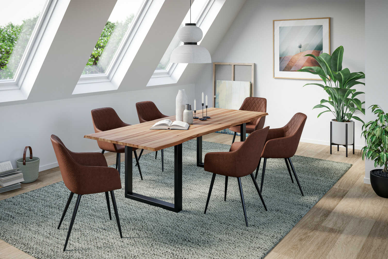 - Hochwertiger und trendiger Esstisch mit 26 mm dicker Holzplatte mit echter Baumkante.