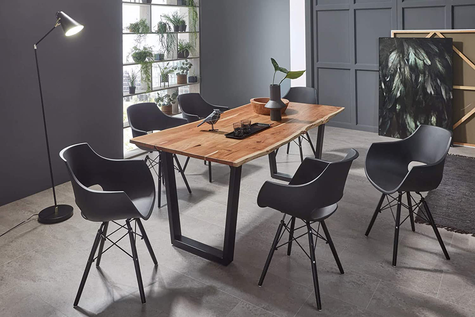 Natürliche & einzigartige Holzmaserung, V-Gestell in schwarz, mit echter Baumkante