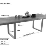 - Länge: ca. 160 cm, erweiterbar durch Ansteckplatten bis ca. 260 cm | Breite: ca. 90 cm | Höhe: ca. 77 cm | Tischplatte: ca. 50 mm – Aufgedoppelt (25 mm + 25 mm) | Gestellstärke: 8 x 4 cm