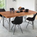 Esszimmertisch Cali mit Ansteckplatten | echte Baumkante | Akazienholz naturfarben + massiv | U-Gestell Metall silber | 160–260 x 90 cm