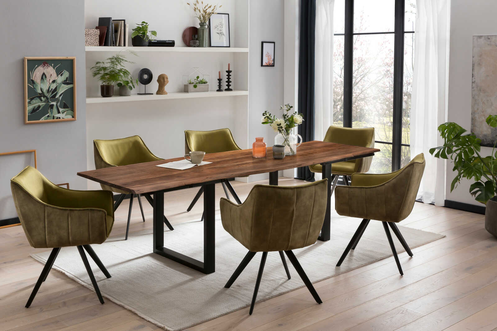 Der trendige Esstisch „Adina“ ist wirklich ein beeindruckendes Möbelstück! Er vereint auf perfekte Weise Natürlichkeit und stylische Moderne. Ein besonderes Highlight sind die Tischkanten, die den natürlichen Formen eines Baumes folgen und dem Tisch einen einzigartigen Charakter verleihen. Das U-förmige Gestell sorgt für einen gelungenen Kontrast und verleiht dem Massivholztisch einen modernen Touch.