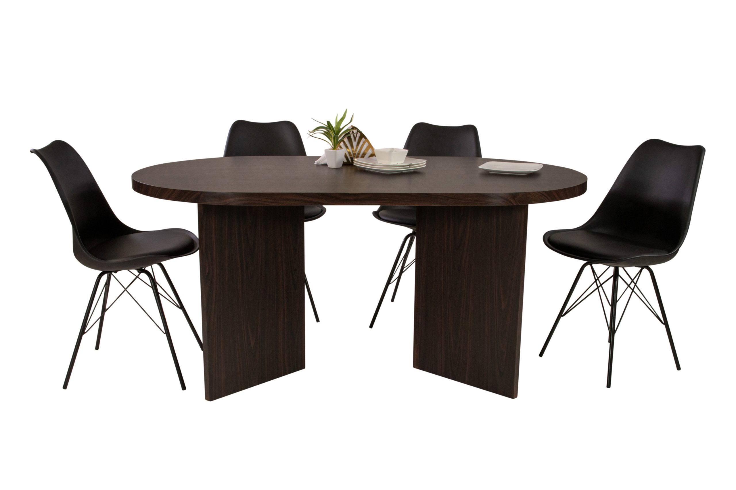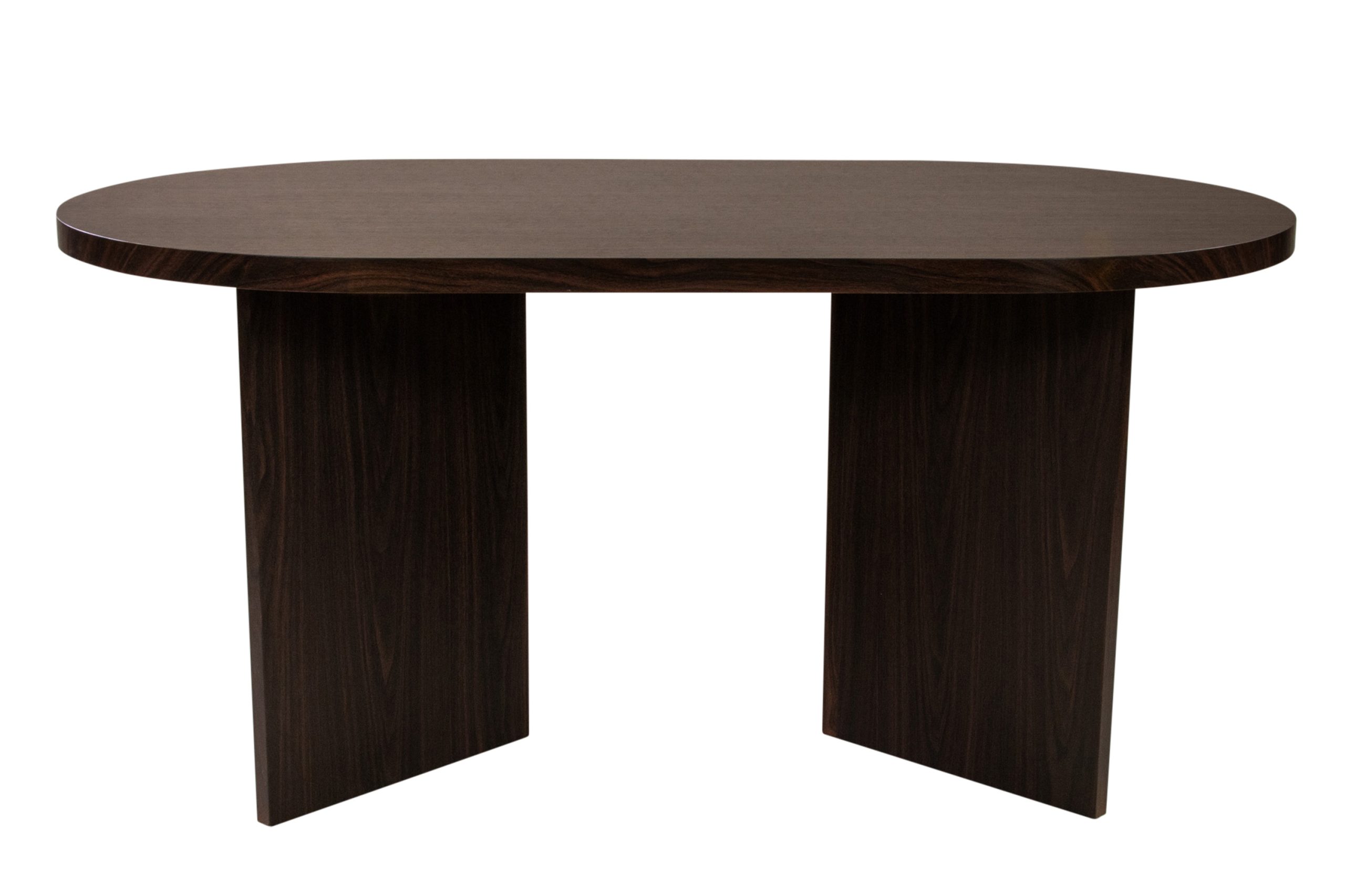 Esstisch Ovi | 160 x 90 cm | MDF Farbe Nussbaum | Ovale & 40 mm Tischplatte | Tischbeine in V-Form