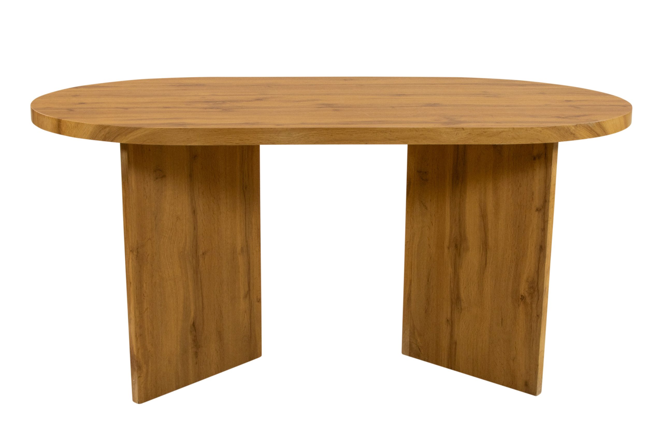 Esstisch Ovi | 160 x 90 cm | MDF Farbe Wildeiche | Ovale & 40 mm Tischplatte | Tischbeine in V-Form