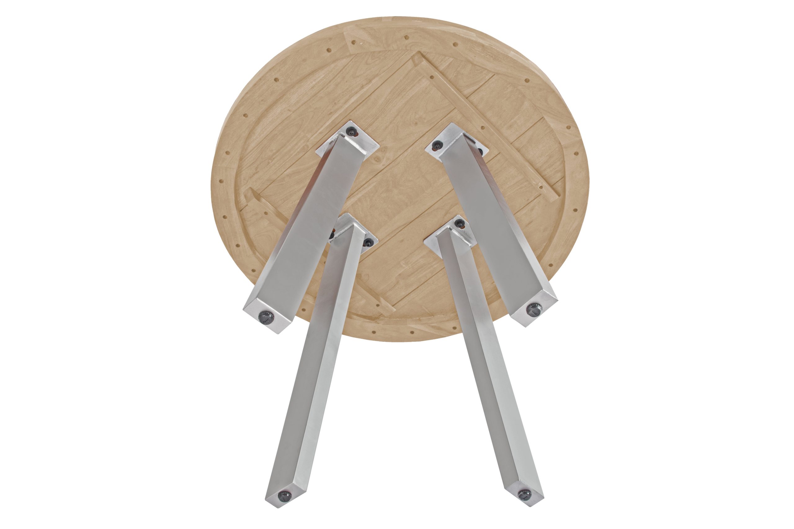 Edler Esszimmertisch Sophia, 100 cm rund, aufgedoppelte Tischplatte (50mm), Akazienholz naturfarben, 4-Fuß-Gestell Silber