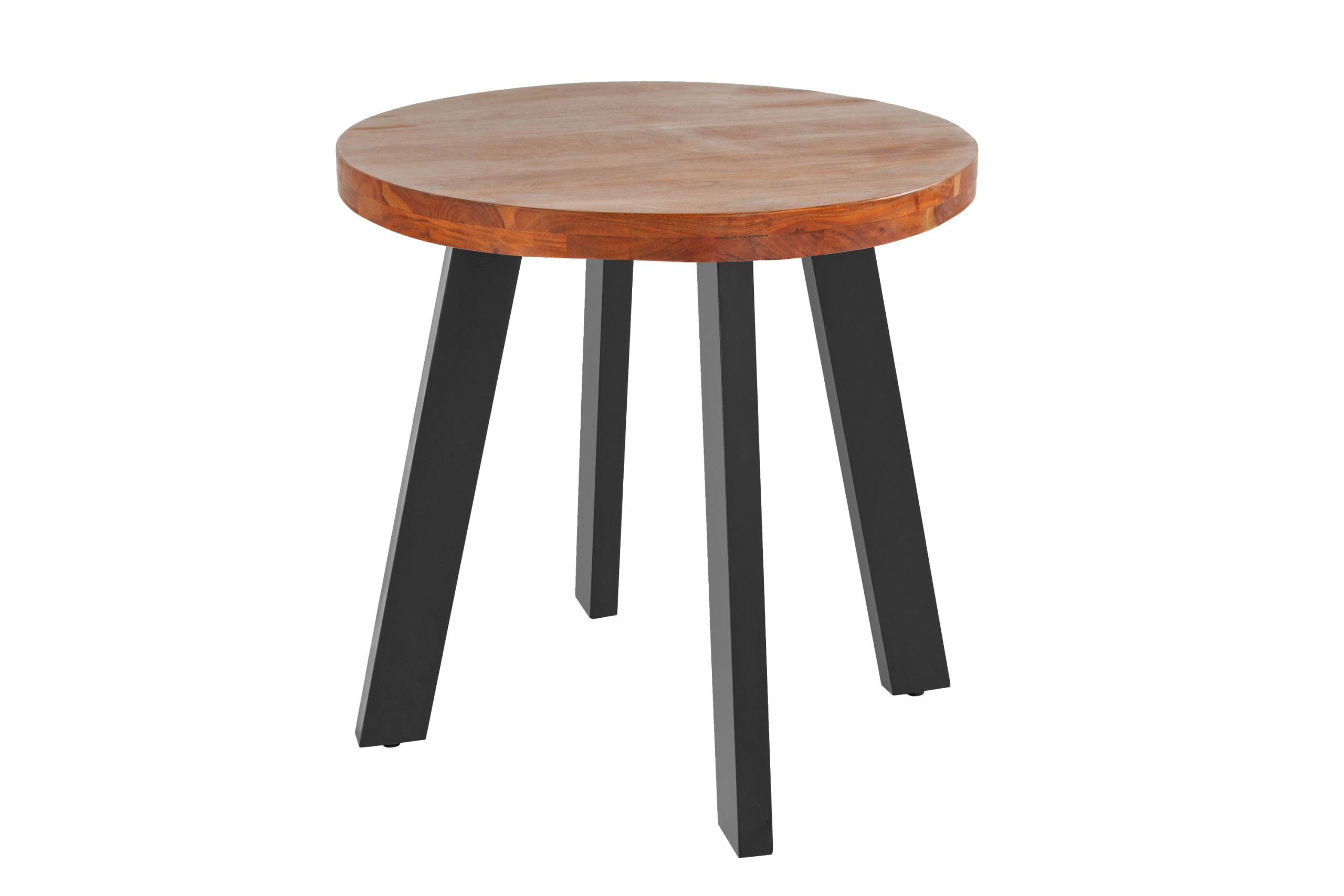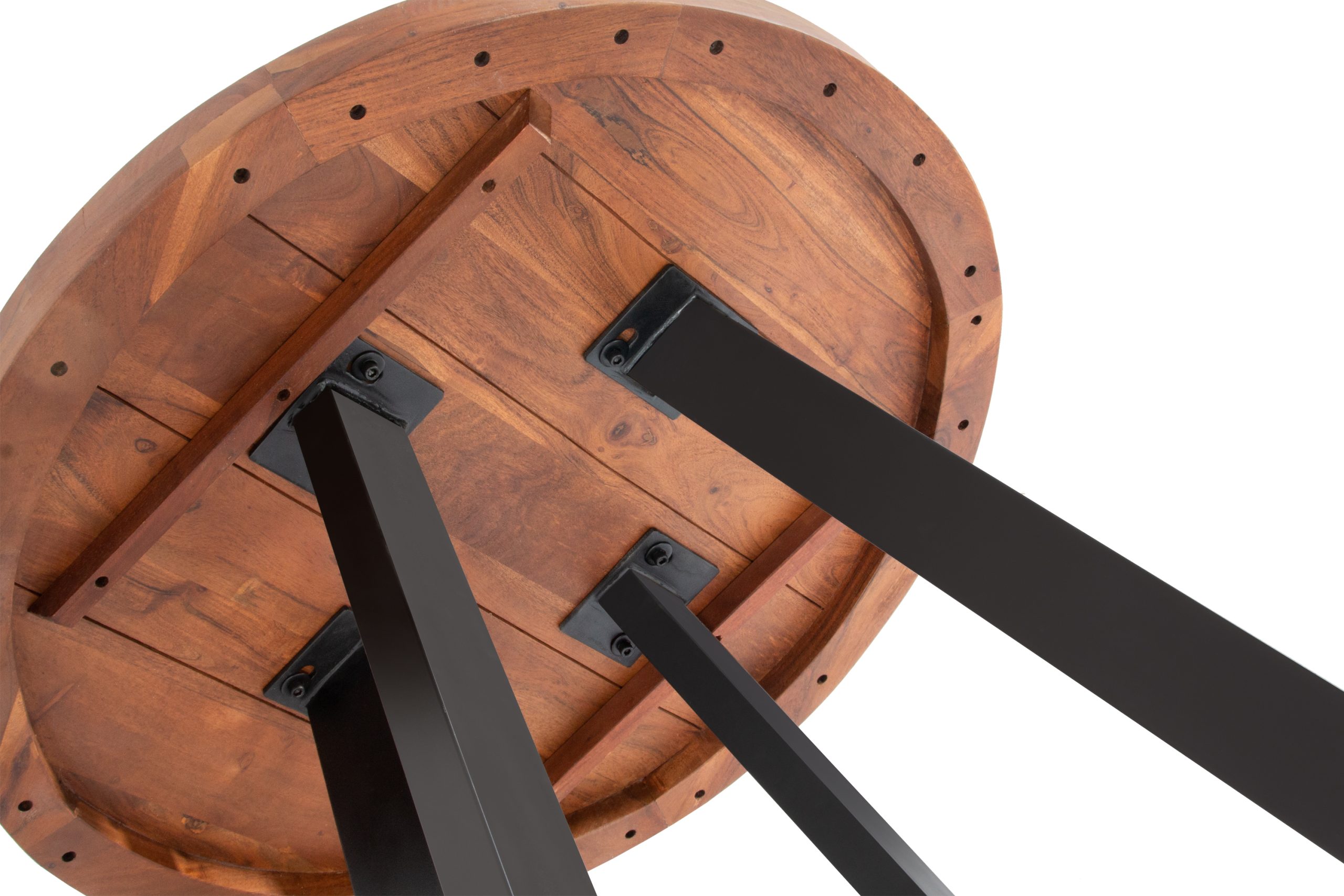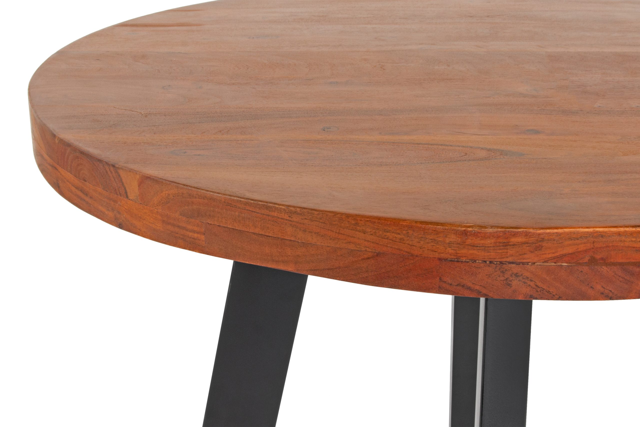 Edler Esszimmertisch Sophia, 100 cm rund, aufgedoppelte Tischplatte (50mm), Akazienholz nussbaumfarben, 4-Fuß-Gestell Schwarz