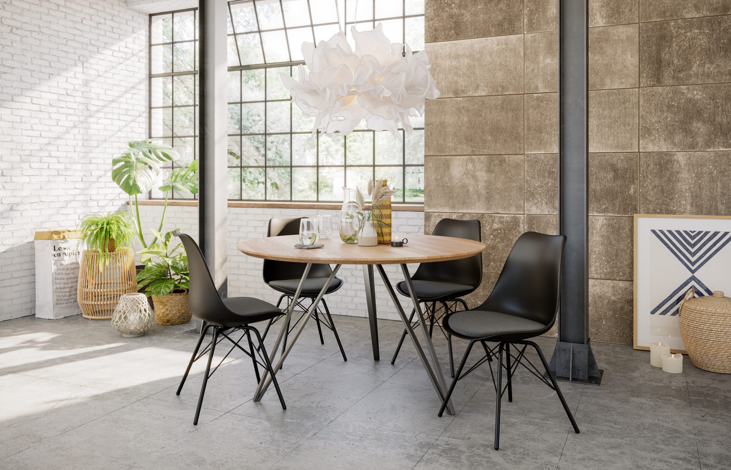 Schreibe die erste Rezension für „Esstisch rund Eichenholz Schweizer Kante Hairpin-Gestell 90 cm silber DREAM“