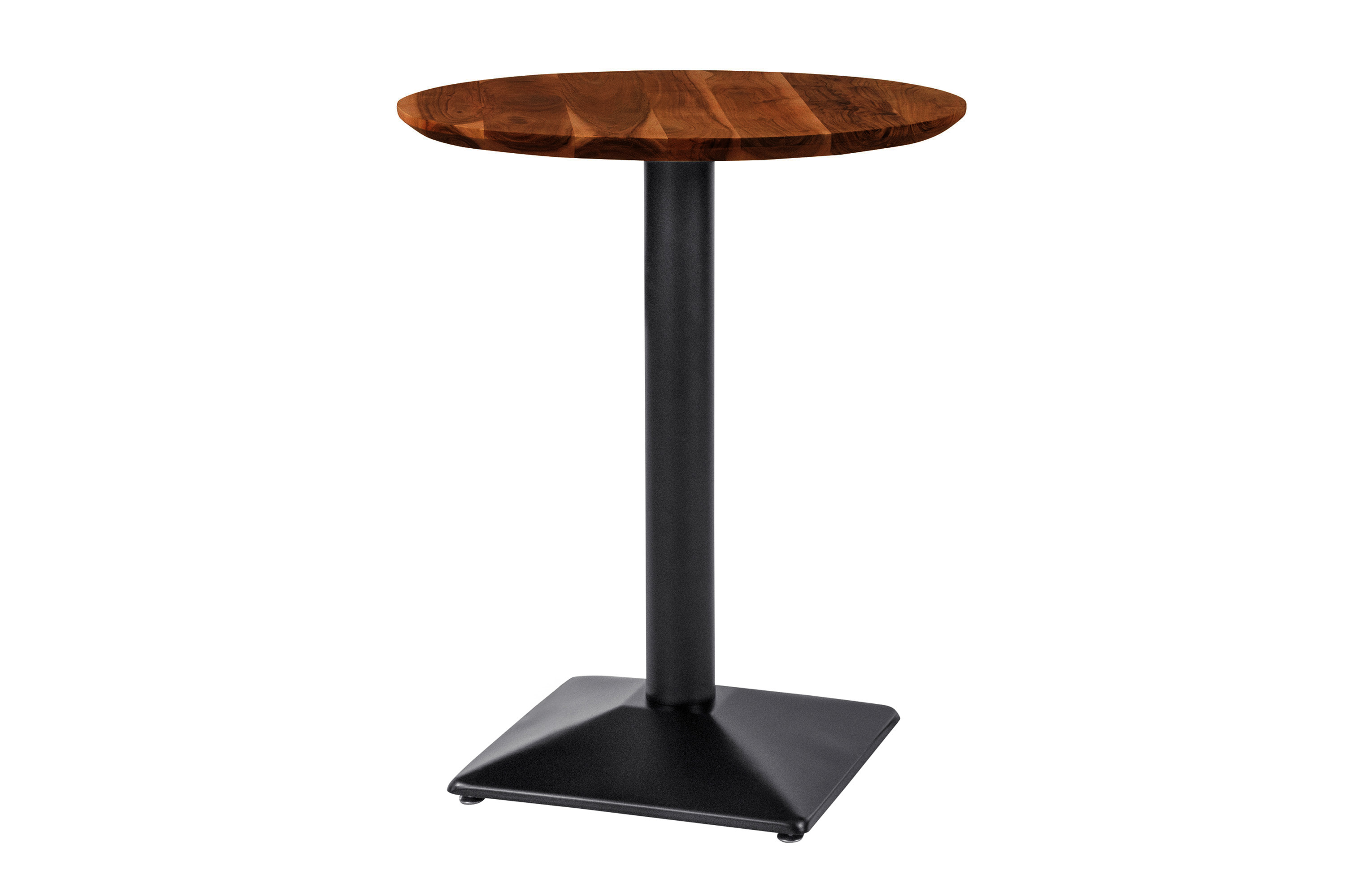 Bistrotisch Brasilia | 60 x 60 cm rund | Akazienholz massiv + nussbaumfarben | Schwarzer Säulenfuß Metall | Schweizer Kante