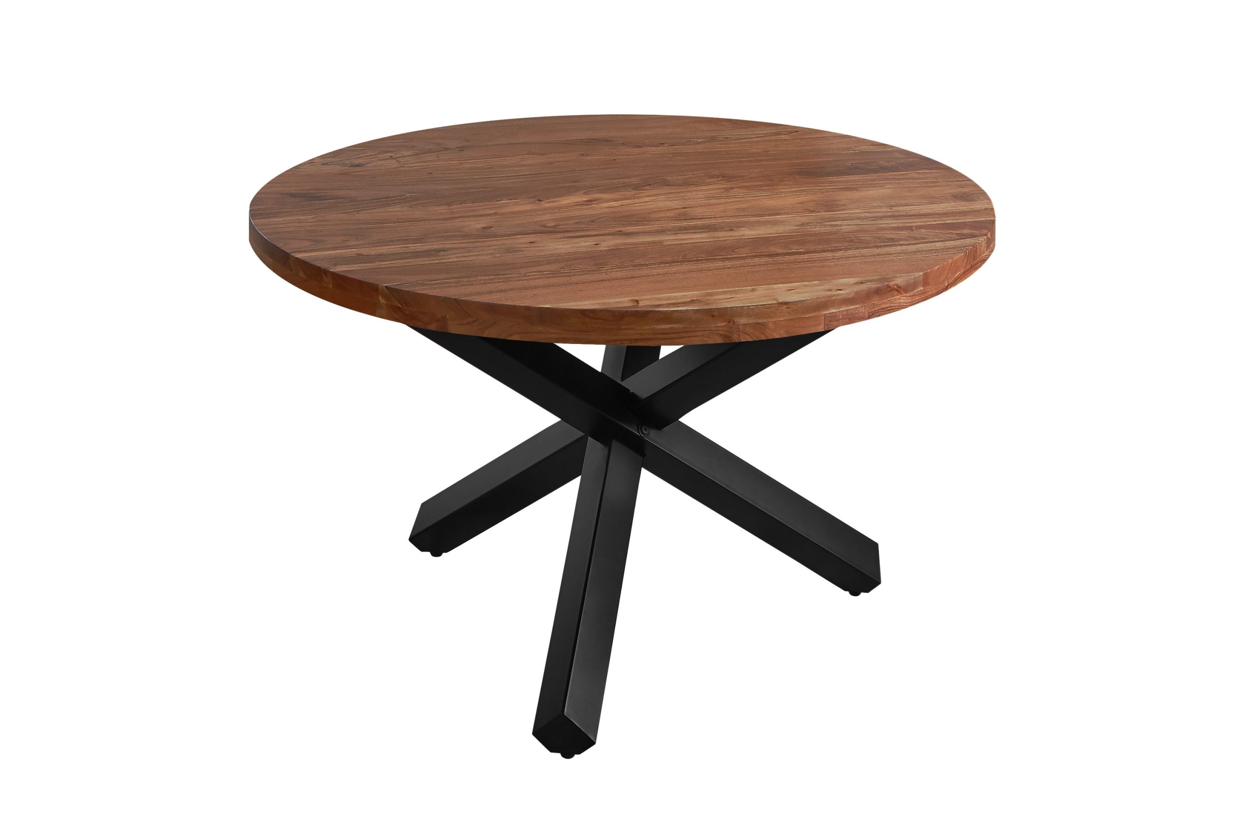 Esstisch Runa | Ø 120 cm | Akazienholz massiv nussbaumfarben | Sternfuß Gestell Schwarz | Runde Tischplatte 50 mm stark