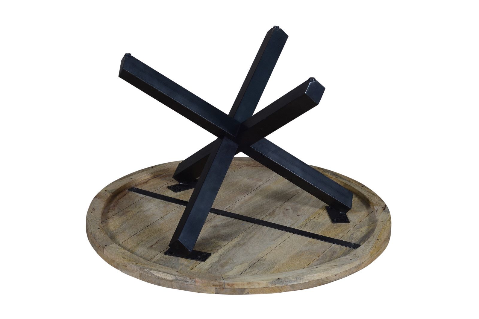Esstisch Runis | Ø 120 cm | Mangoholz massiv naturfarben | Sternfuß Gestell Schwarz | Runde Tischplatte 50 mm stark