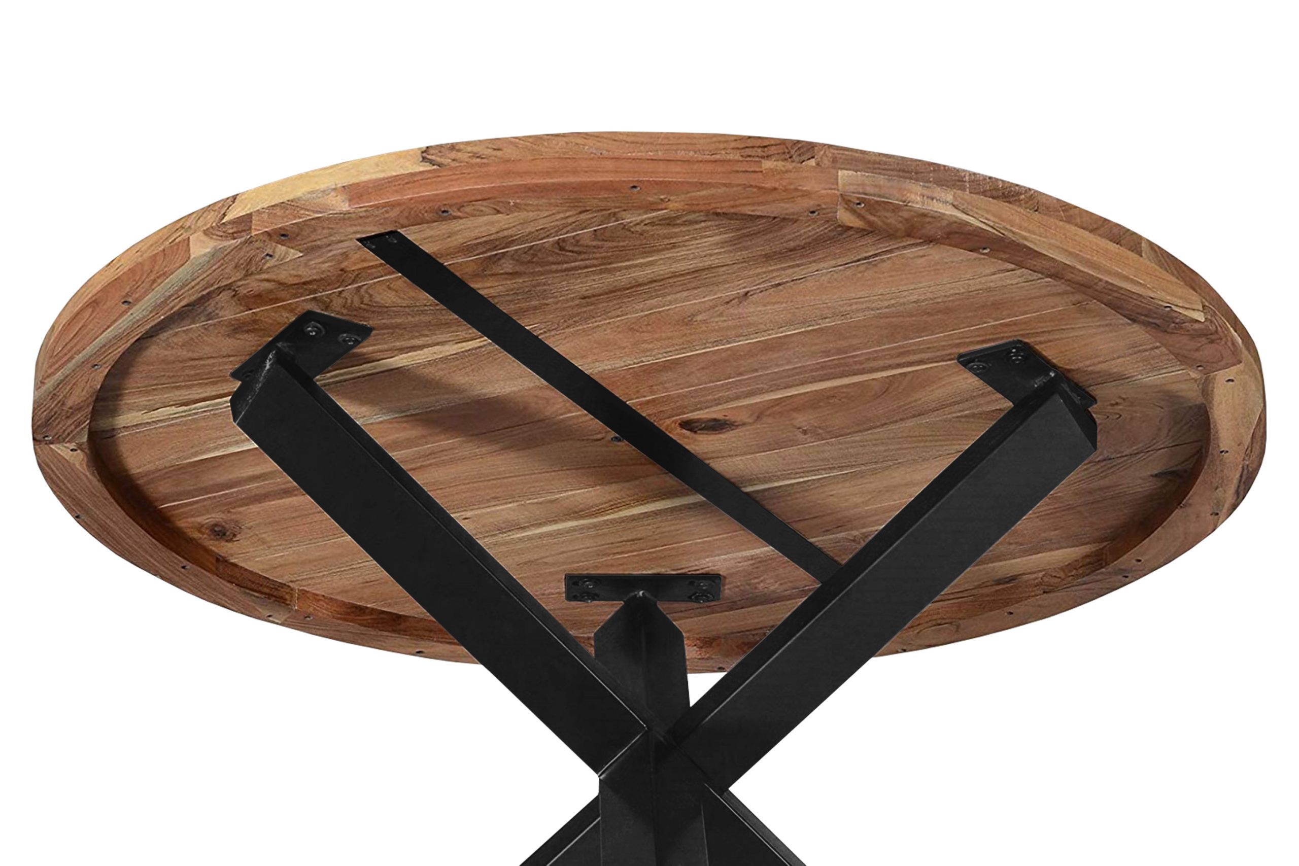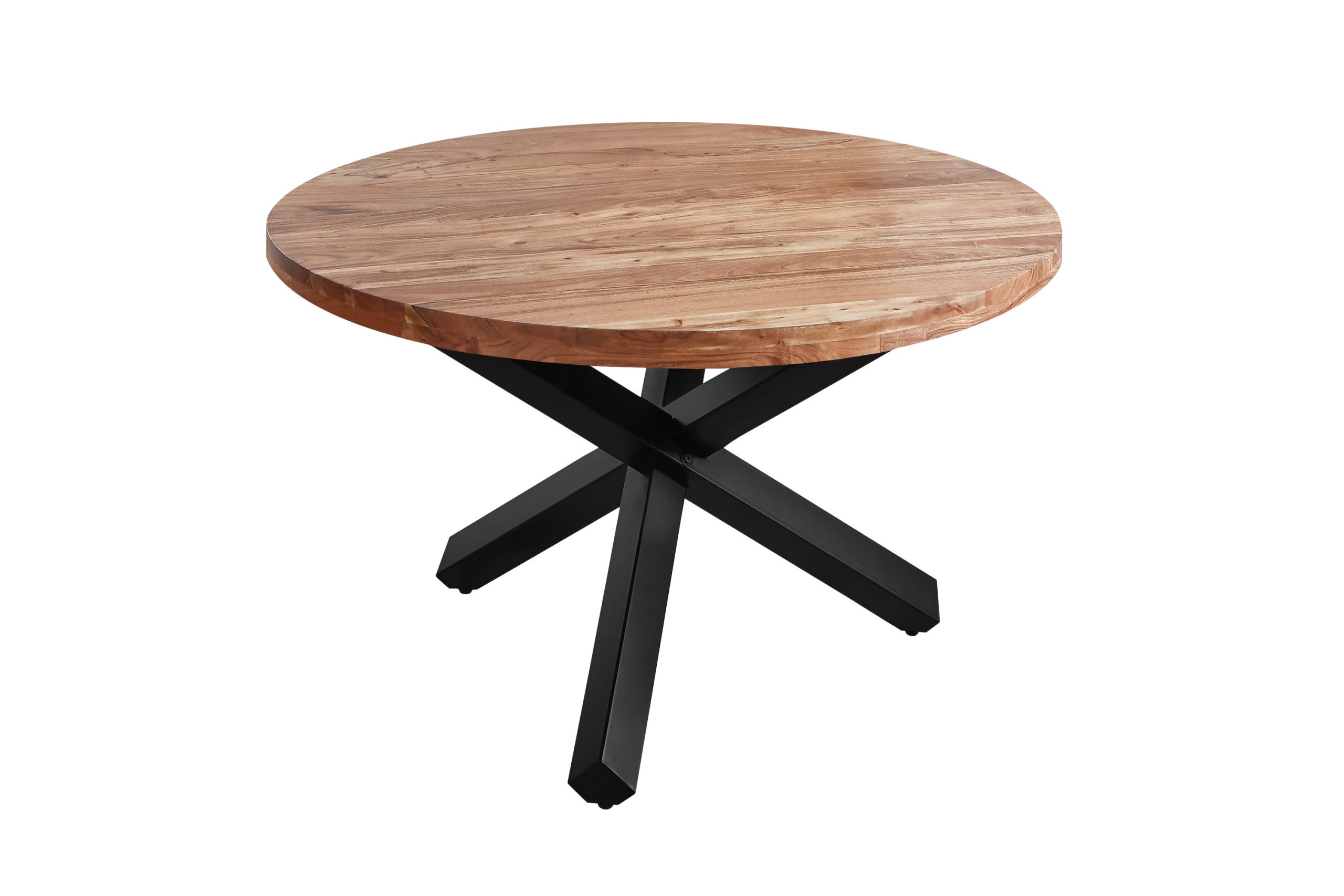 Esstisch Runa | Ø 130 cm | Akazienholz massiv naturfarben | Sternfuß Gestell Schwarz | Runde Tischplatte 50 mm stark