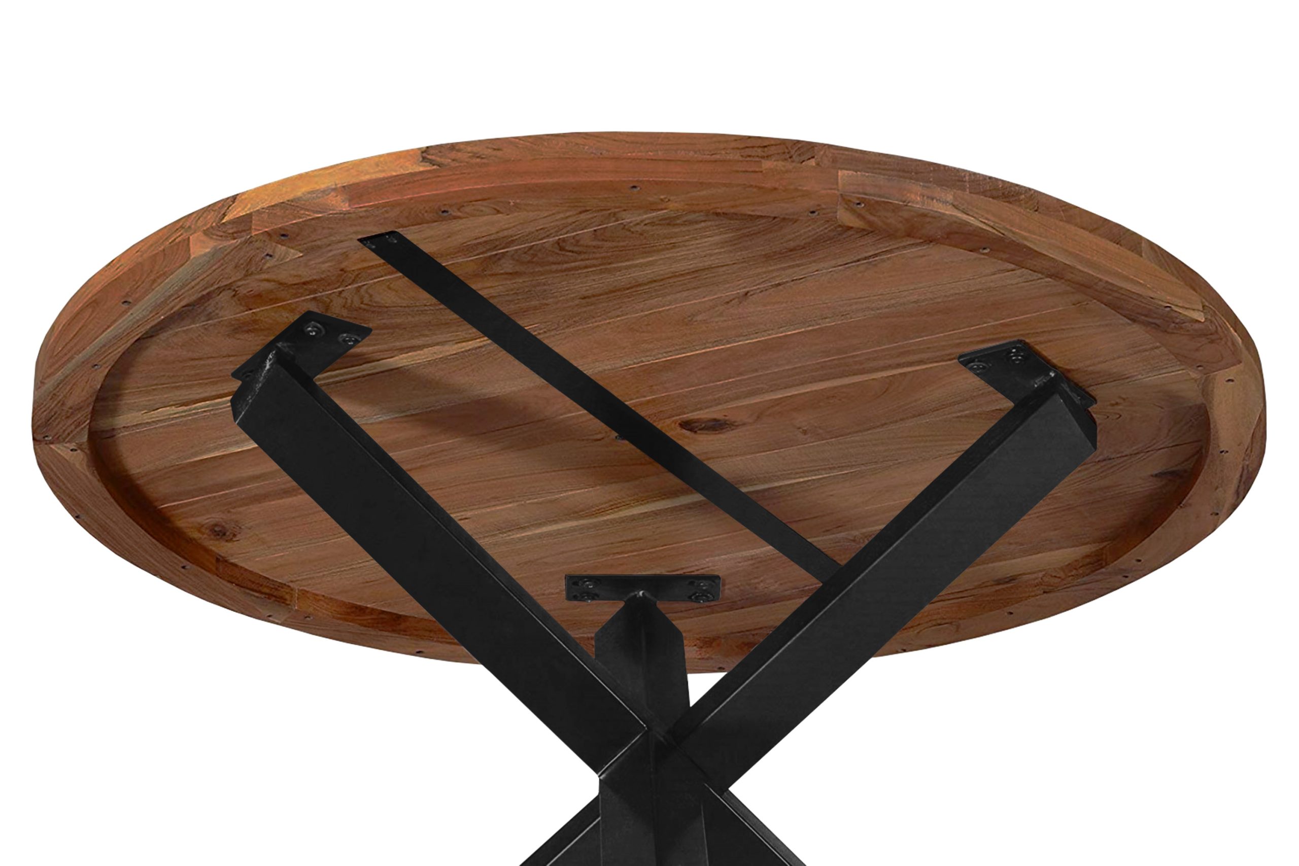 Esstisch Runa | Ø 130 cm | Akazienholz massiv nussbaumfarben | Sternfuß Gestell Schwarz | Runde Tischplatte 50 mm stark