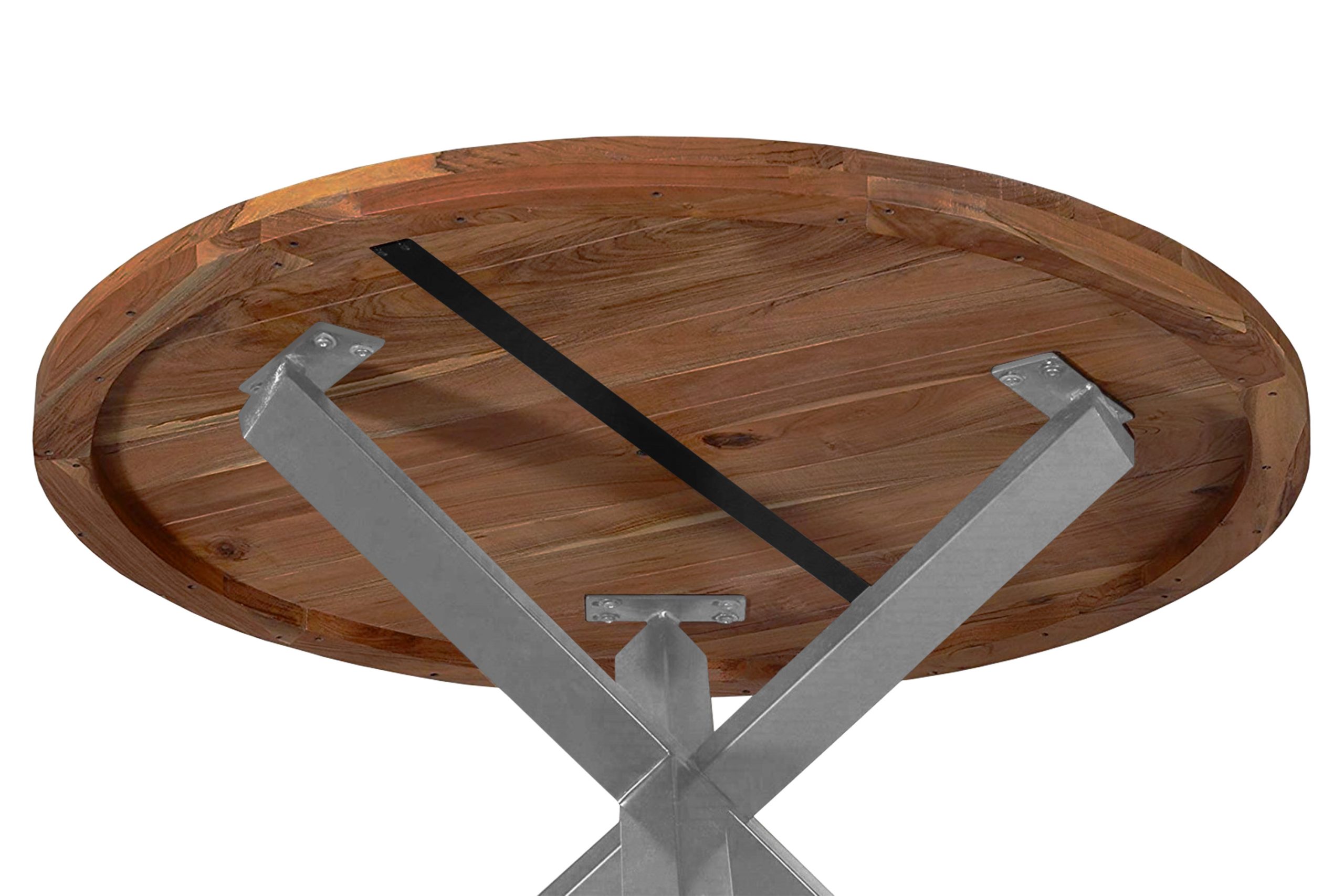 Esstisch Runa | Ø 140 cm | Akazienholz massiv nussbaumfarben | Sternfuß Gestell Silber | Runde Tischplatte 50 mm stark
