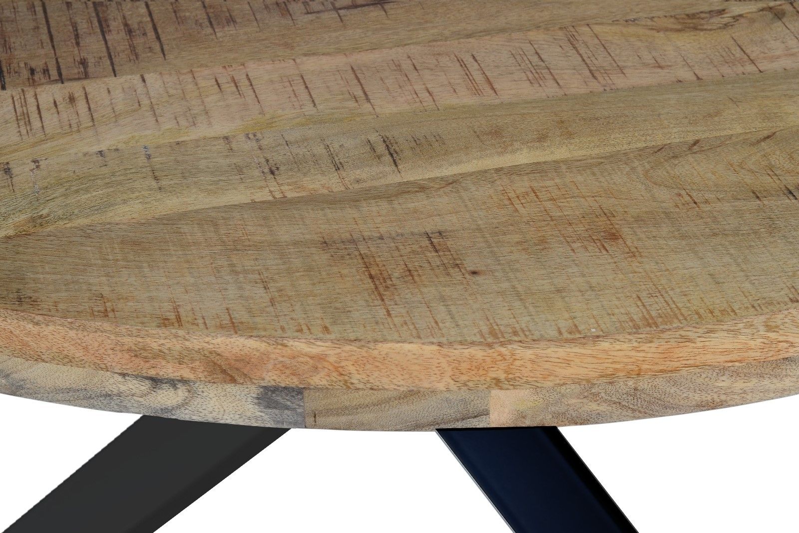 Esstisch Runis | Ø 140 cm | Mangoholz massiv naturfarben | Sternfuß Gestell Schwarz | Runde Tischplatte 50 mm stark