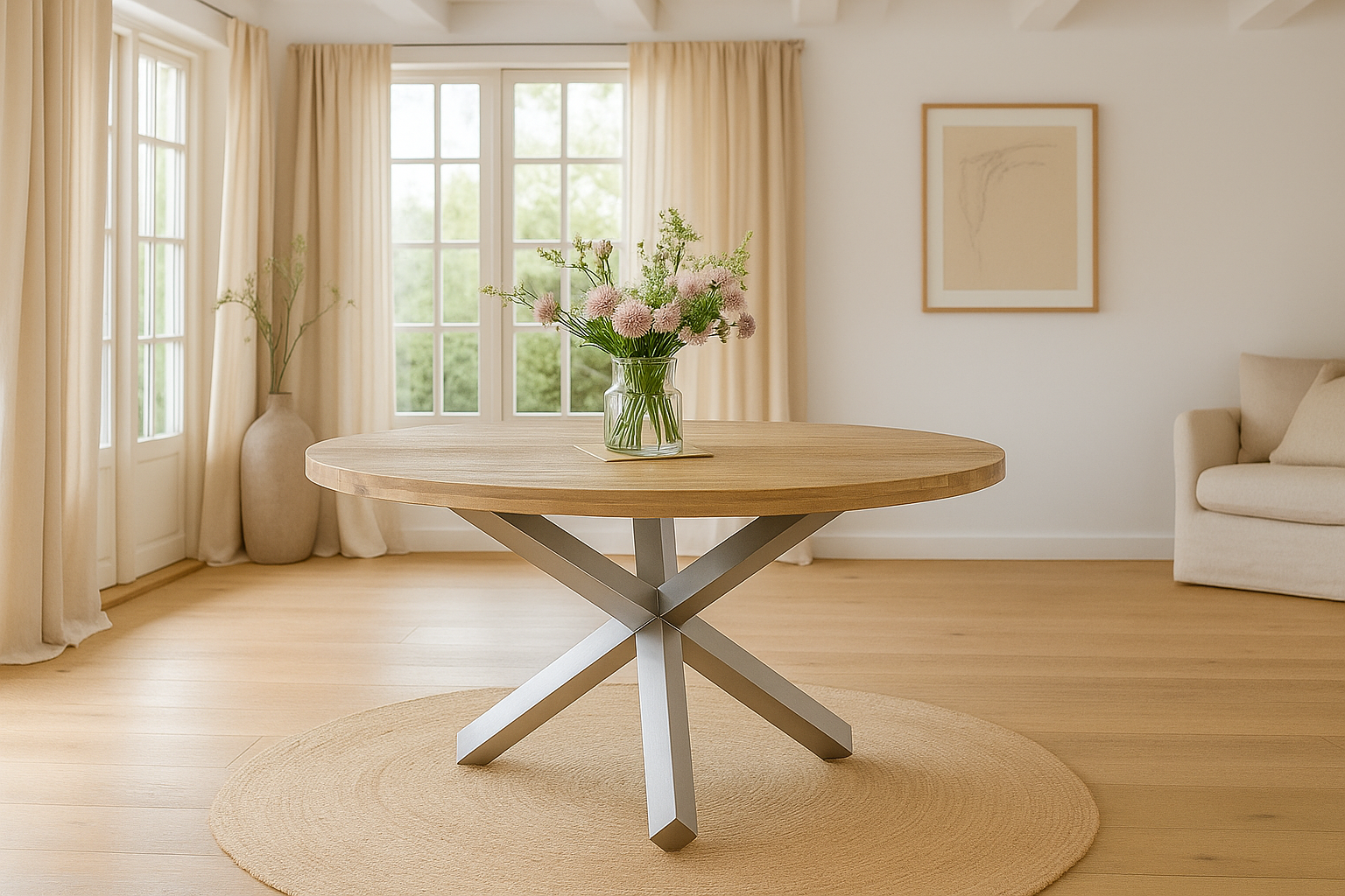 Sichern Sie sich jetzt den runden Esszimmertisch Runis und erleben Sie hochwertiges Massivholz-Design zu einem fairen Preis.