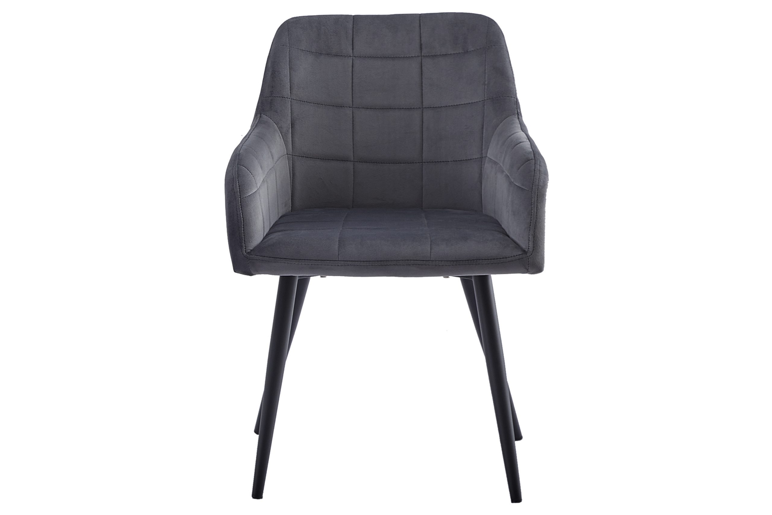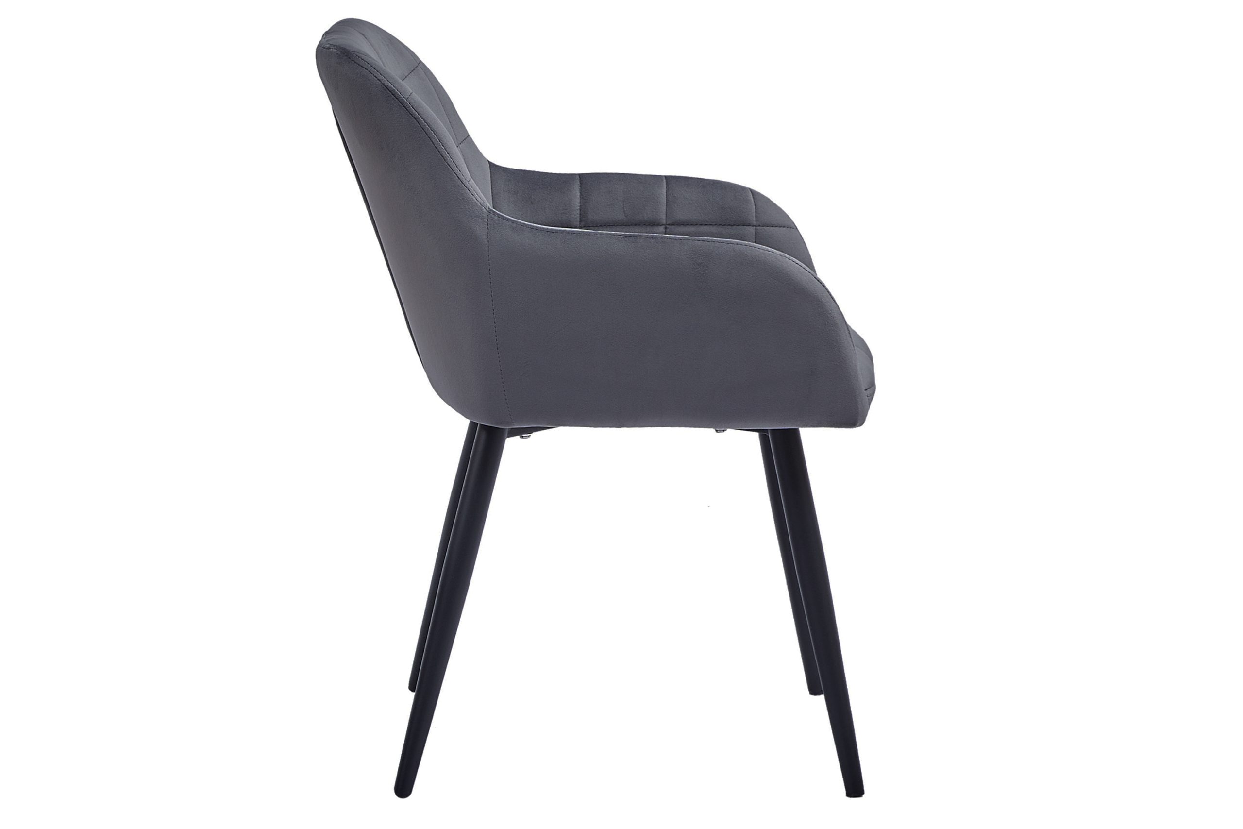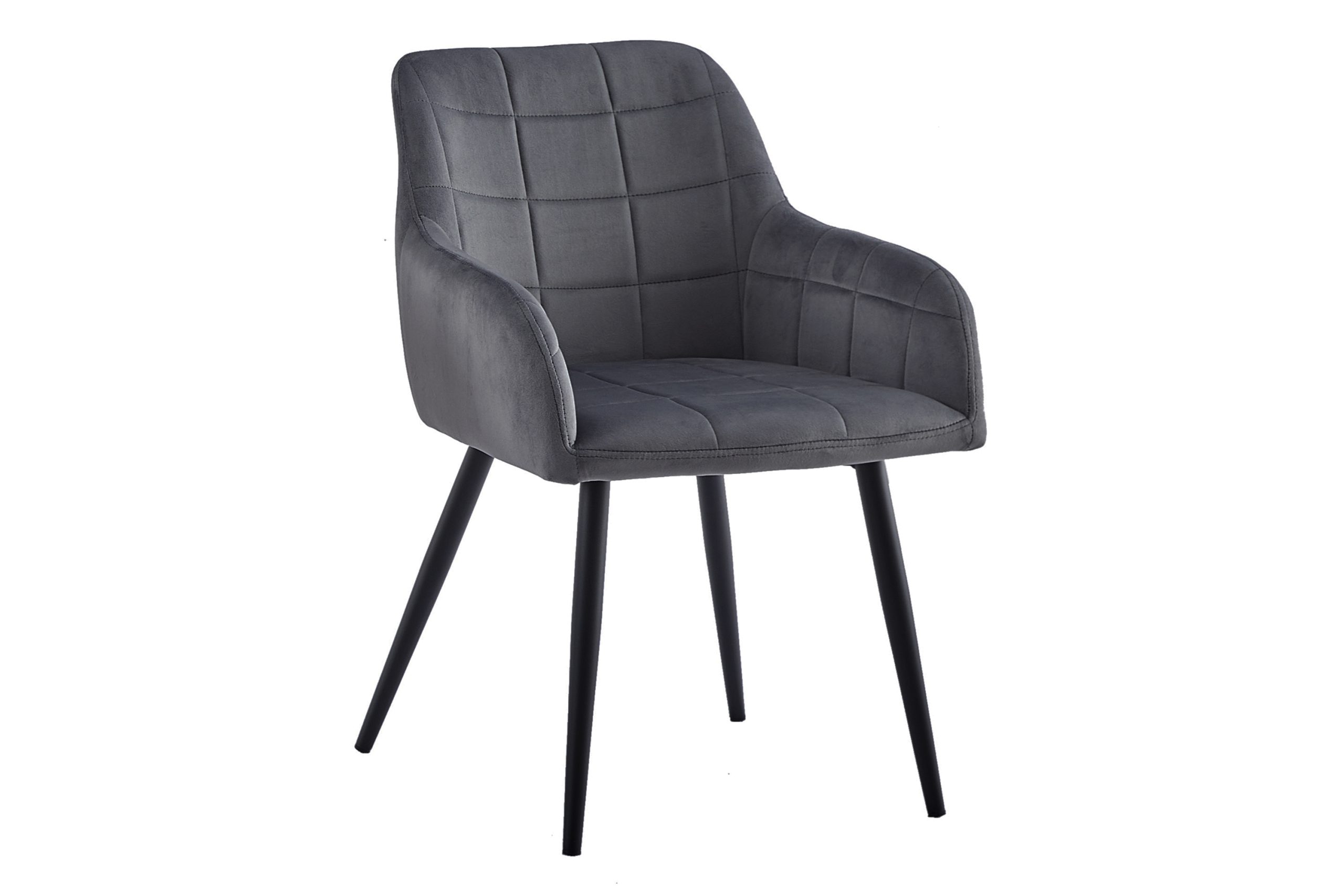 Moderner Esszimmerstuhl Lars mit Samtbezug in Anthrazit und schwarzen Metallfüßen