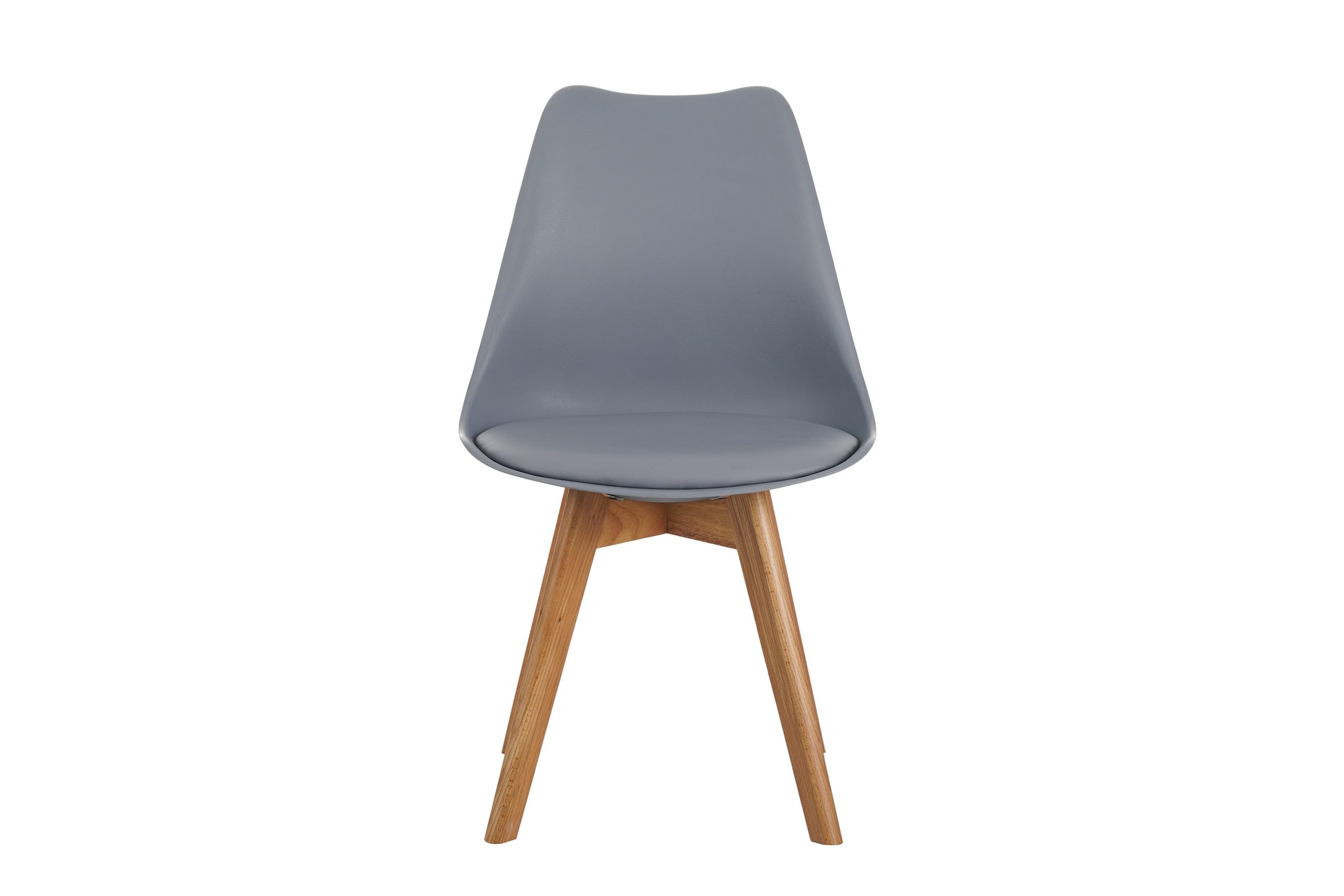 Esszimmerstuhl Graue Sitzschale & -Polster Kunstleder Stuhlbeine Massivholz Eichenfarben LOVELACE