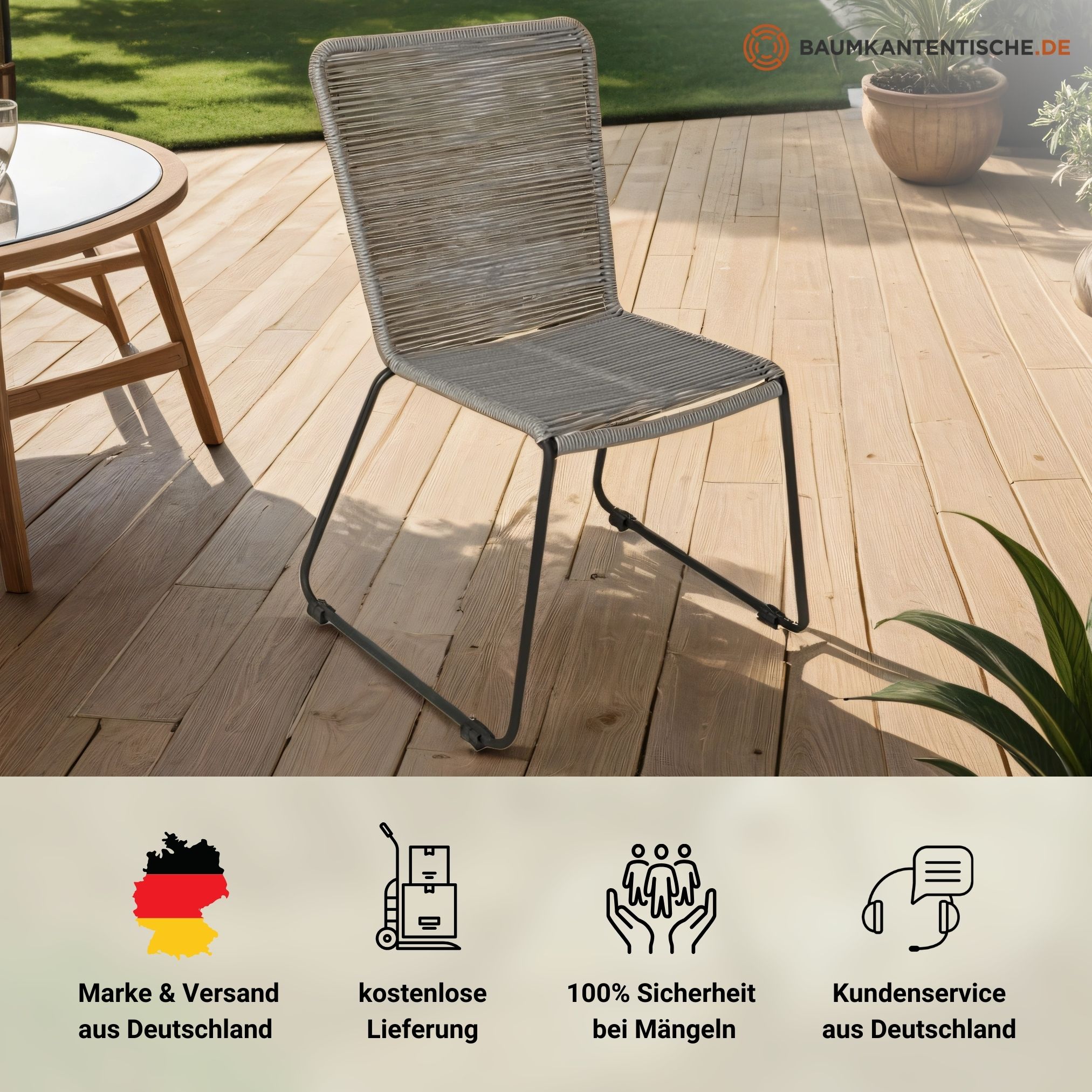 - Die Seilbespannung aus Polyester und das pulverbeschichtete Eisenrohr-Gestell machen die Gartenstühle zu einer stylischen & robusten Sitzmöglichkeit.