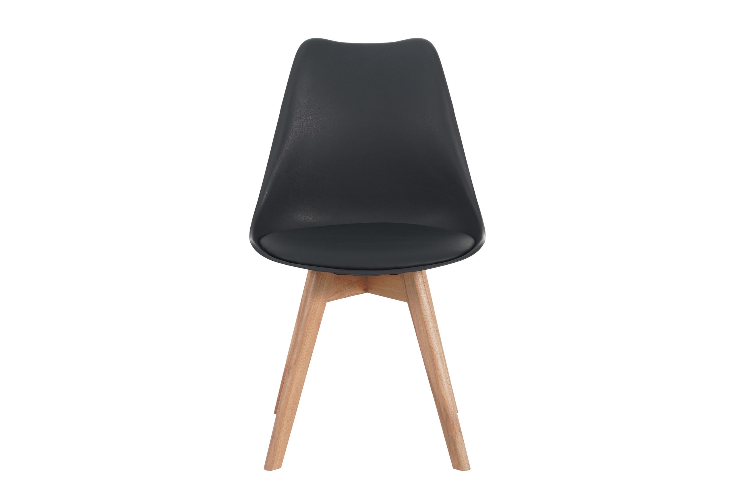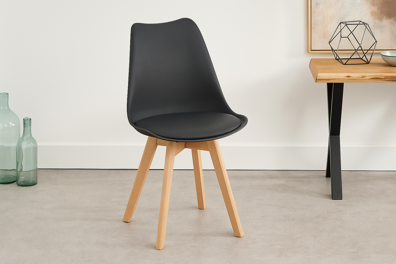 Esszimmerstuhl Lovelace | 49 x 54 x 82 cm | Schwarze Sitzschale & -Polster | Stuhlbeine Massivholz Buche | Skandinavischer Stil