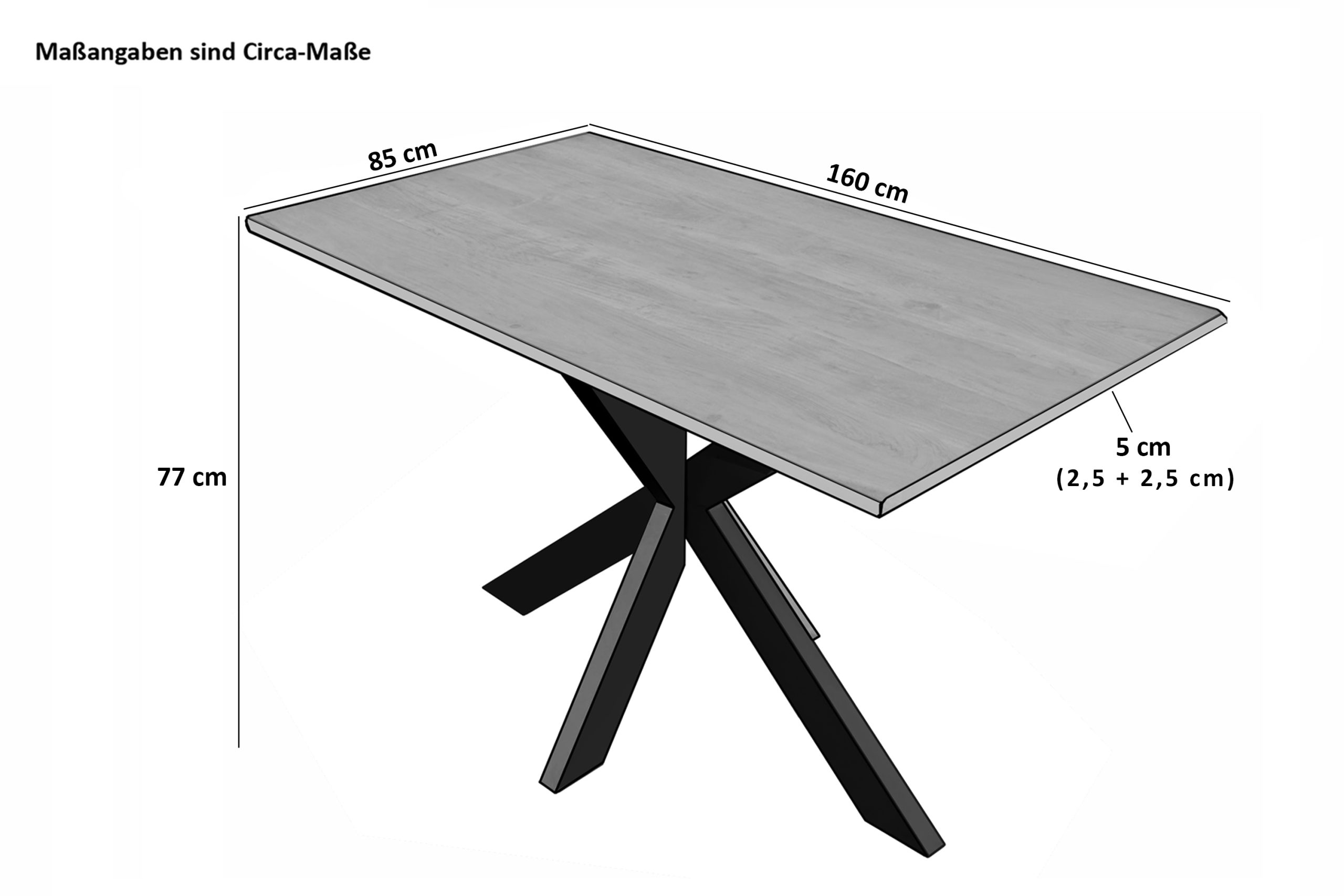 - Länge: 160 cm | Breite: ca. 85 cm | Gesamthöhe: ca. 77 cm | Materialstärke: ca. 5 cm