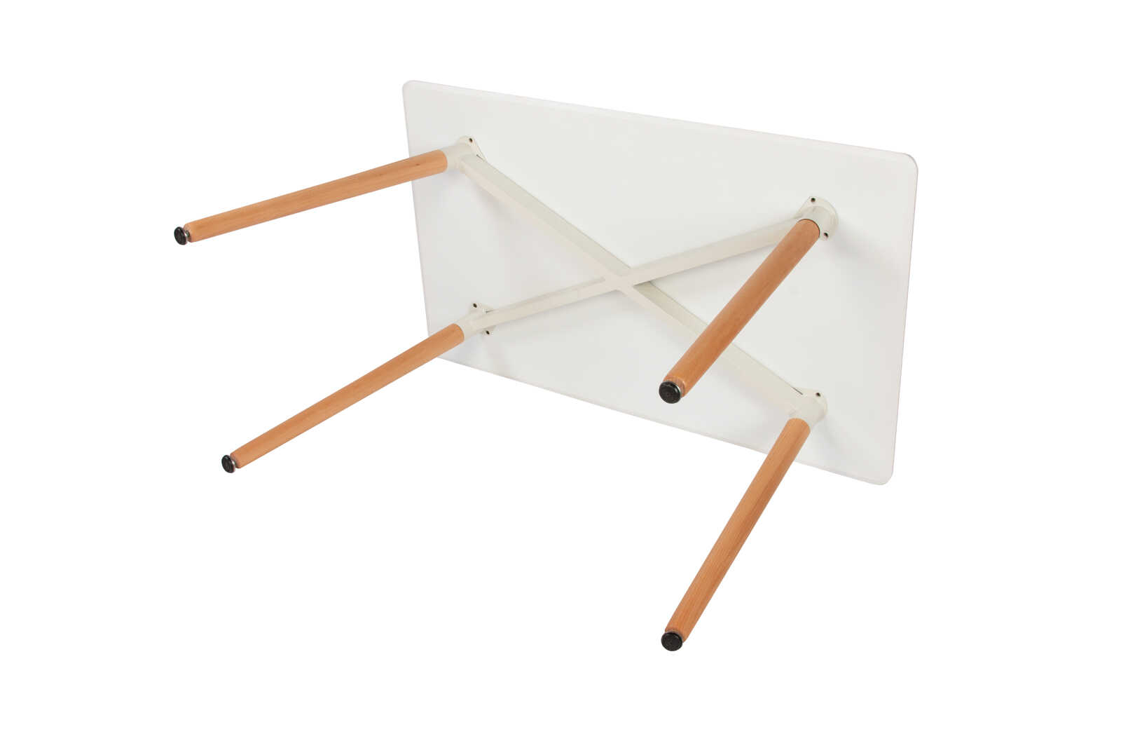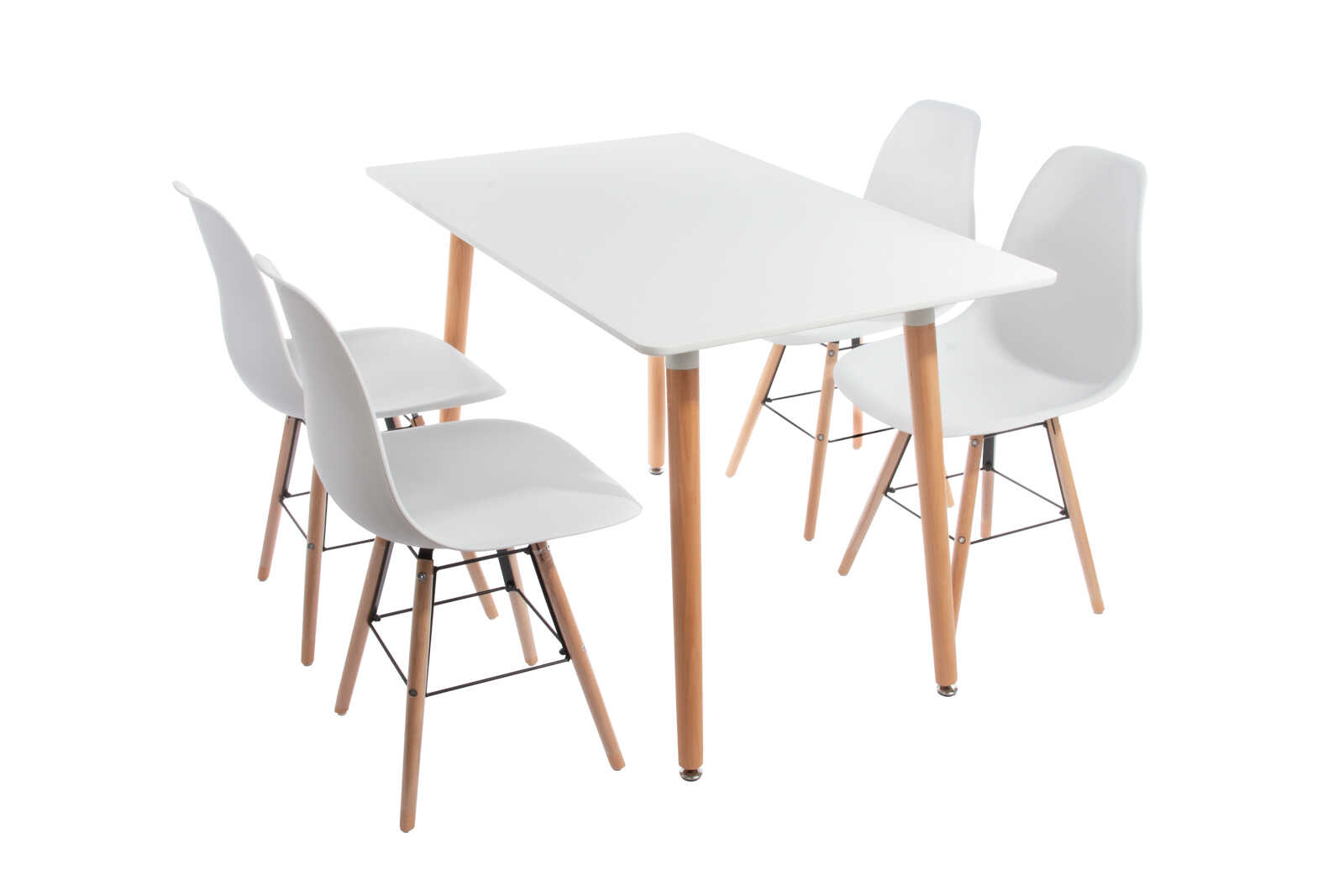 Tische im skandinavischen Stil verbinden Komfort mit einem außergewöhnlichen Design. Unser Esszimmertisch DANIEL überzeugt mit seiner stabilen Tischplatte aus MDF sowie seiner klaren Linienführung. Die belastbare und weiße Tischplatte in Kombination mit dem Holzgestell aus Buchenholz wirkt minimalistisch und trotzdem edel, zeitlos und modern. Die stabile Geometrie der Beine garantiert einen sicheren und wackelfreien Stand, während die kleinen herausdrehbaren Füßchen den Boden vor Kratzern schützen und Unebenheiten im Boden ausgleichen. Die sorgfältige Verarbeitung und die hohe Qualität der Materialien sorgen für eine hohe Belastbarkeit und Langlebigkeit. Für eine leichte und problemlose Reinigung sorgen die strapazierfähigen und pflegeleichten Oberflächen des Esstischs.