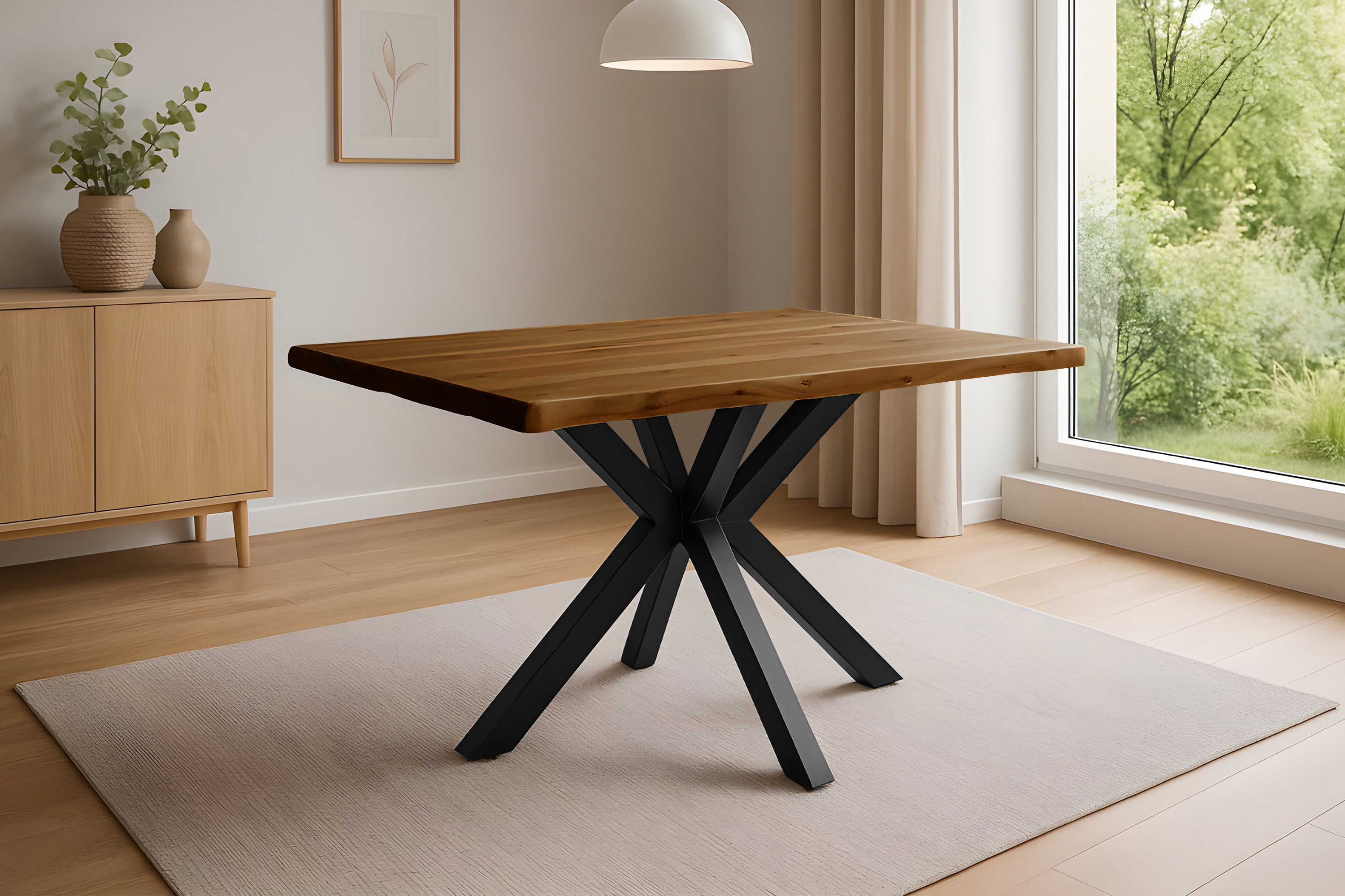 Esstisch Baumkante 140 x 80 cm Akazie massiv Honig Spider-Gestell schwarz HARLEY