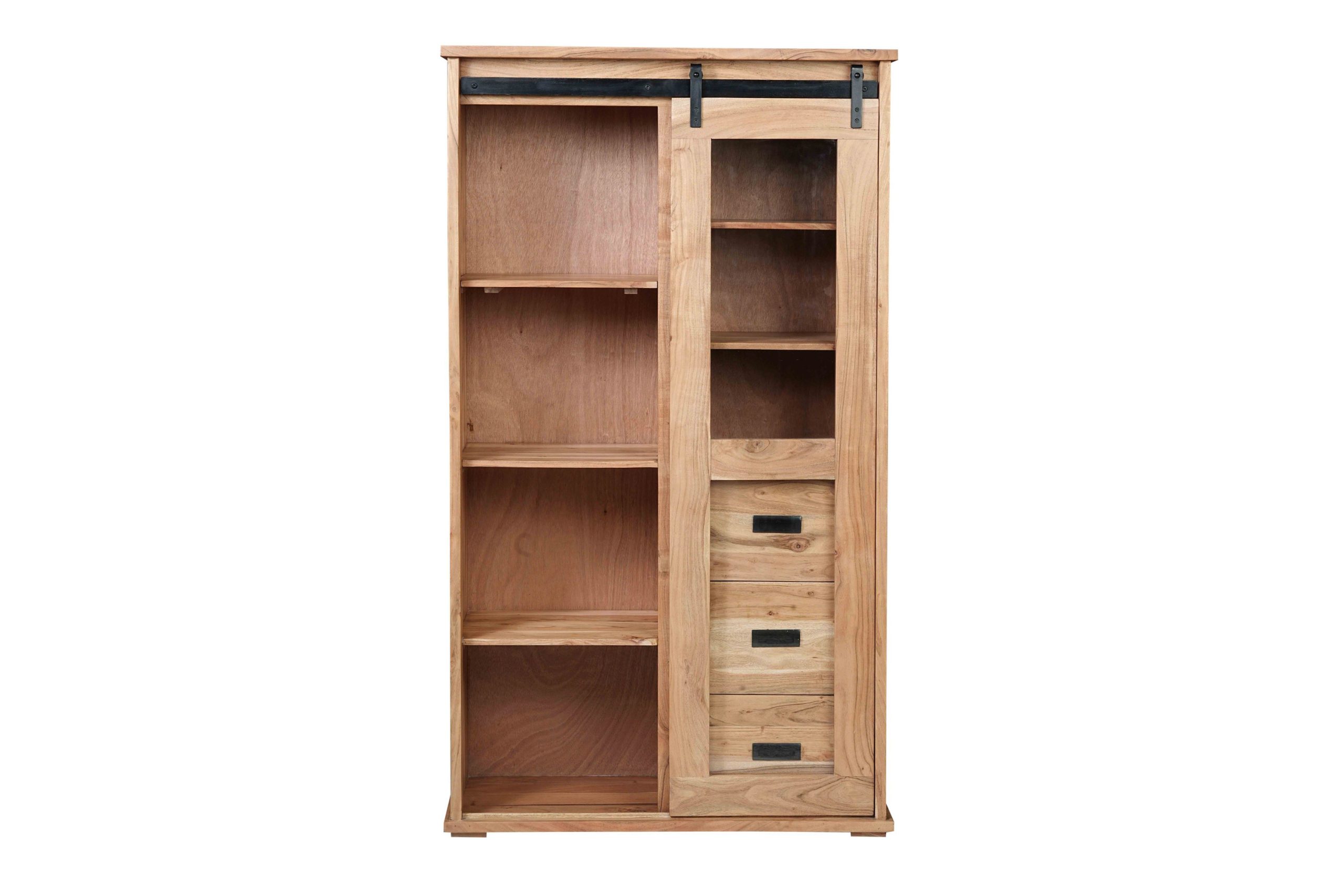 Highboard Liano IV | Akazie Naturfarben | Glas-Schiebetür, 7 Fächer & 3 Schubladen | 100x45x175 cm