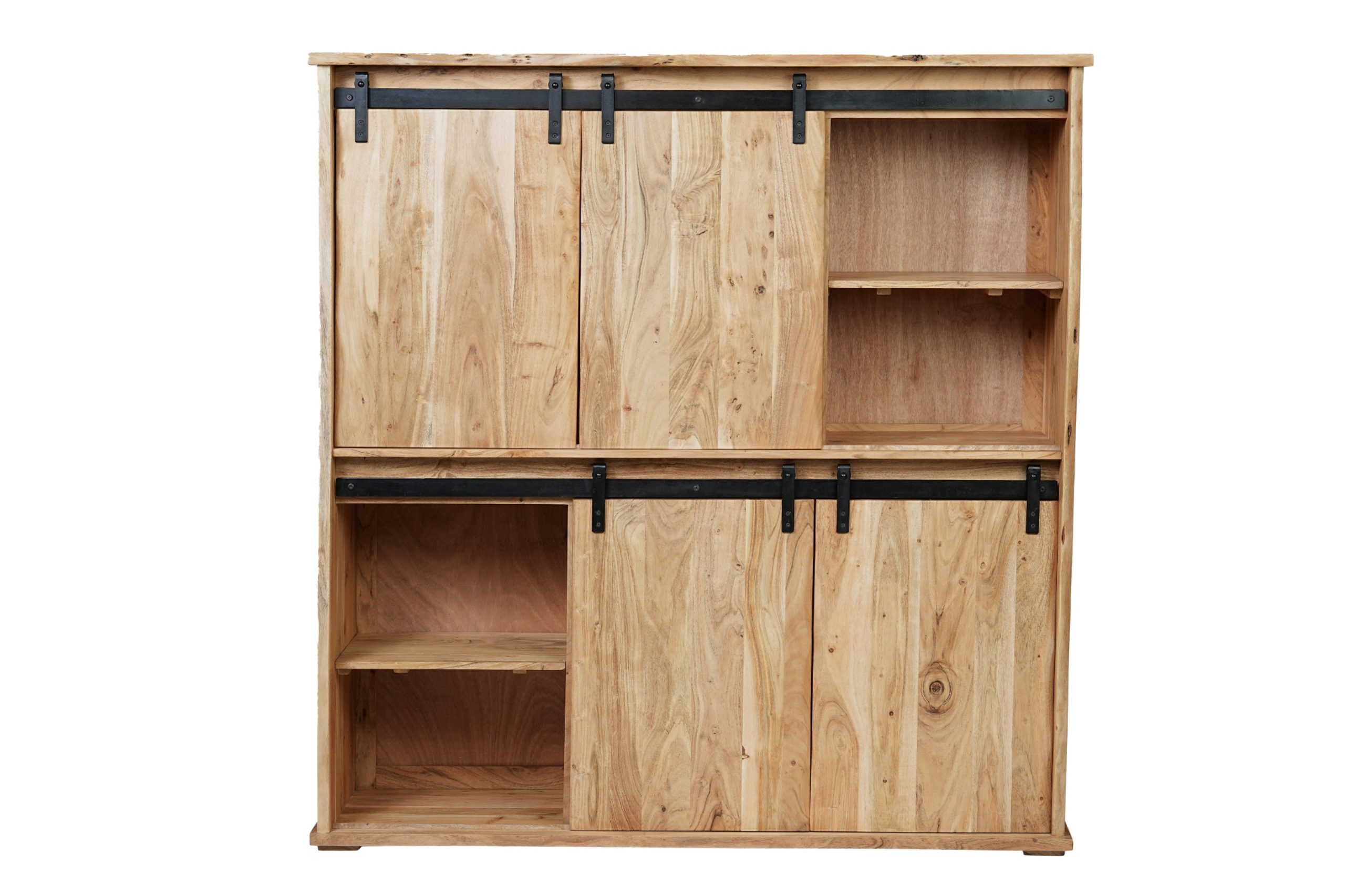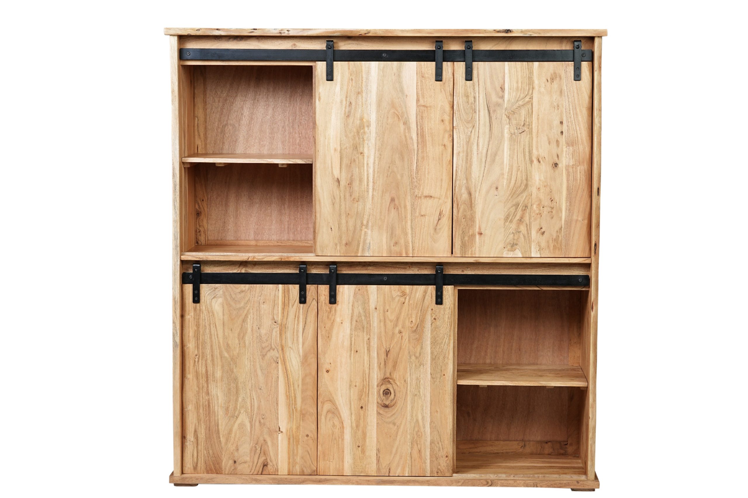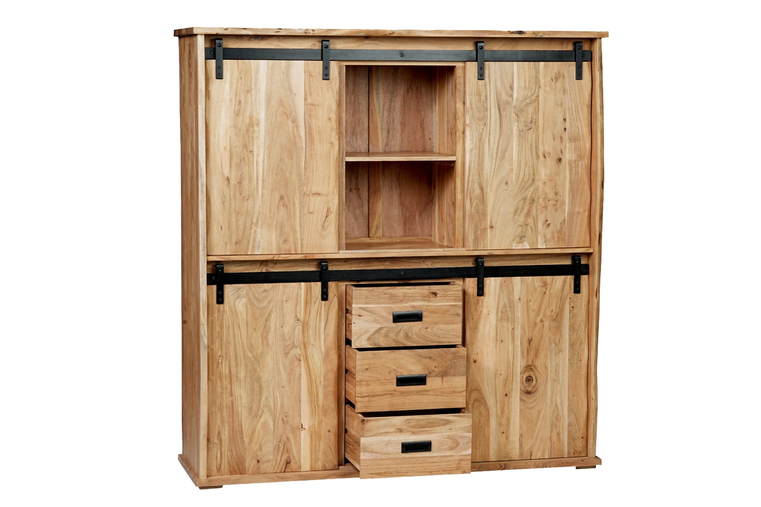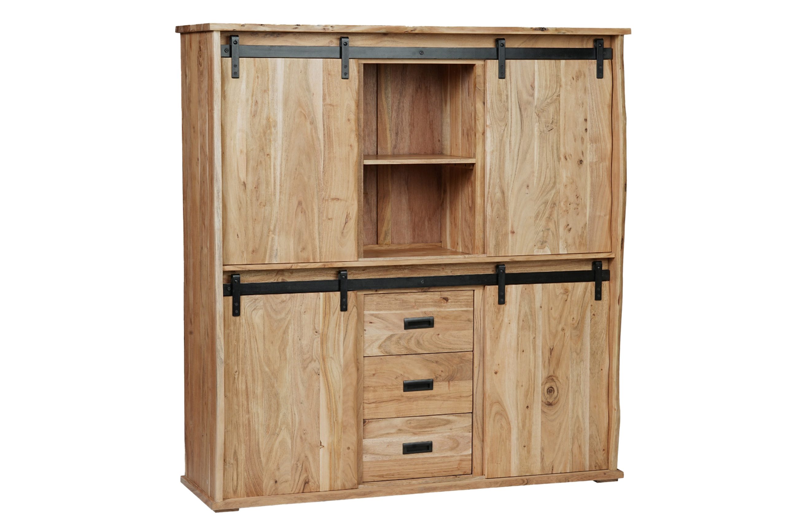 Das Highboard aus massivem Akazienholz in Natur vereint natürliche Schönheit mit industriellen Akzenten. Durch die einzigartige Maserung wird jedes Möbelstück zu einem Unikat, das Wärme und Stil in Ihr Zuhause bringt.