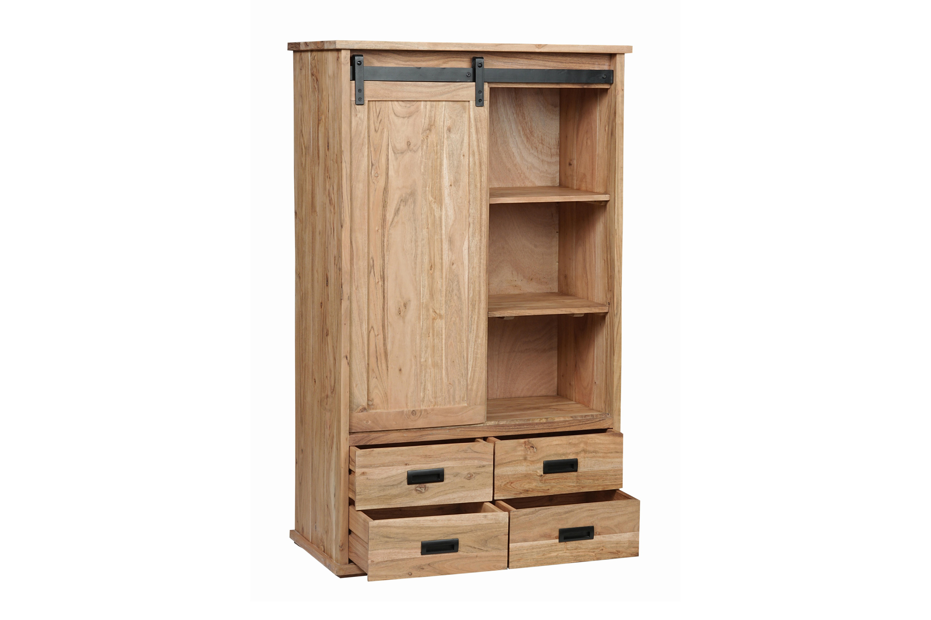 Highboard Lian II | Akazie Naturfarben | Schiebetür, 6 Fächer & 4 Schubladen | 90x45x150 cm