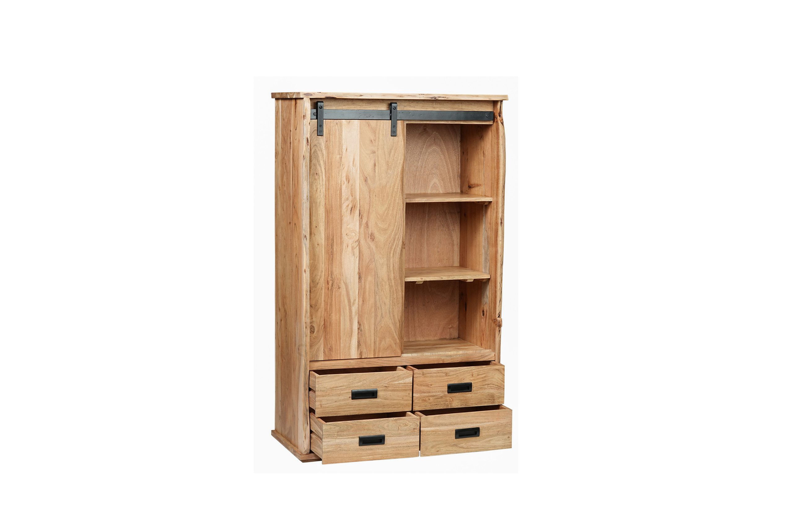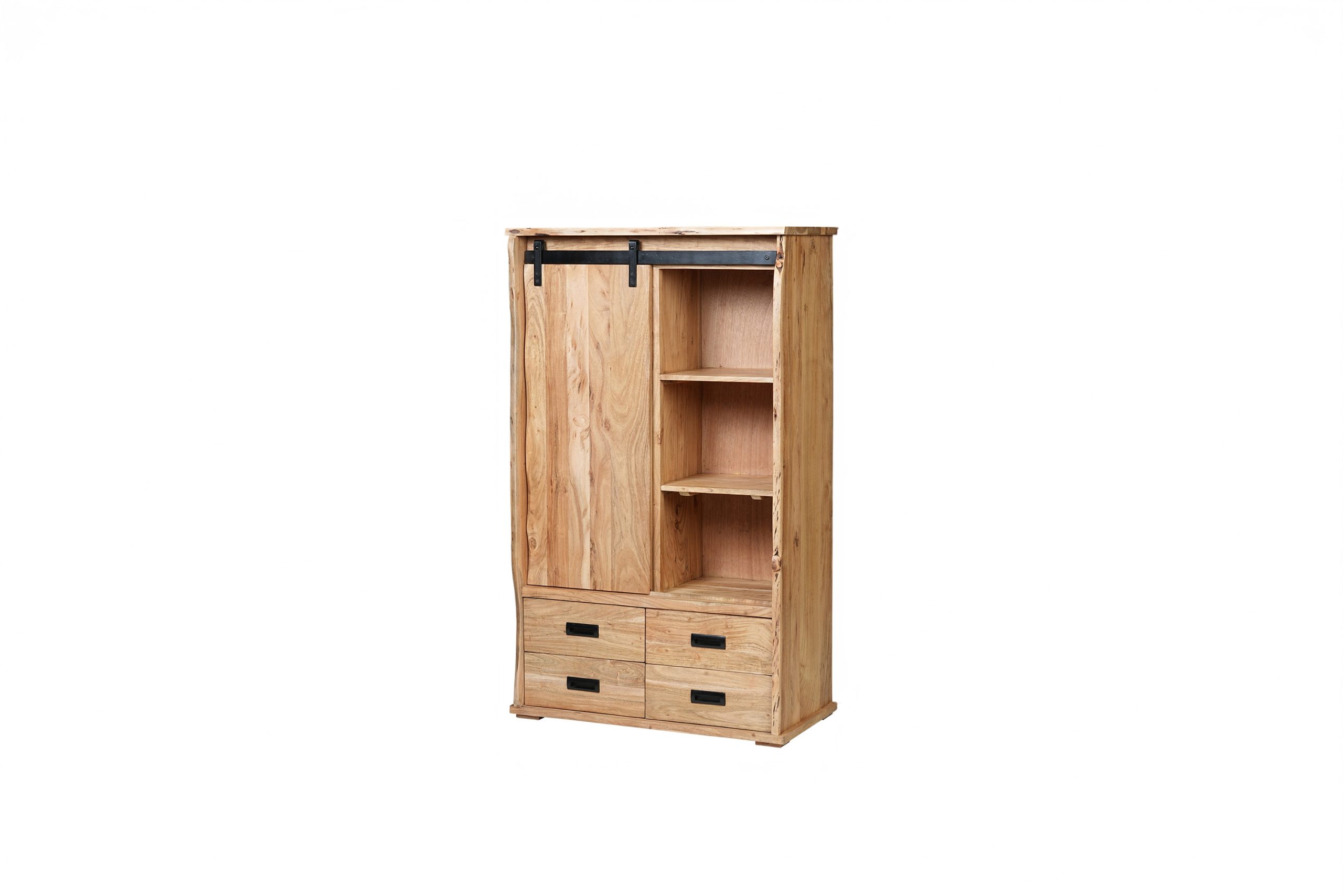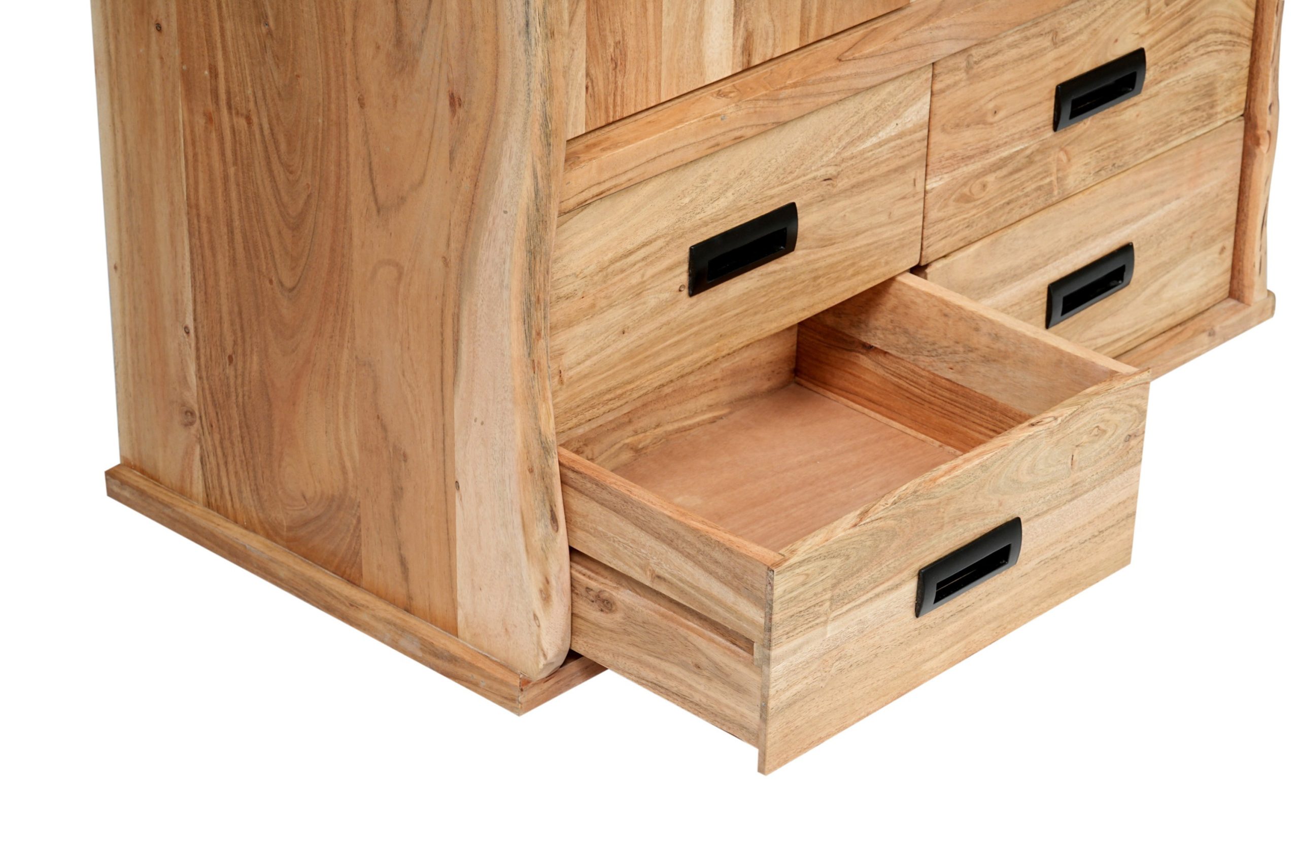 Highboard Lian II | Akazie Naturfarben | Schiebetür, 6 Fächer & 4 Schubladen | mit Baumkante | 90x45x150 cm