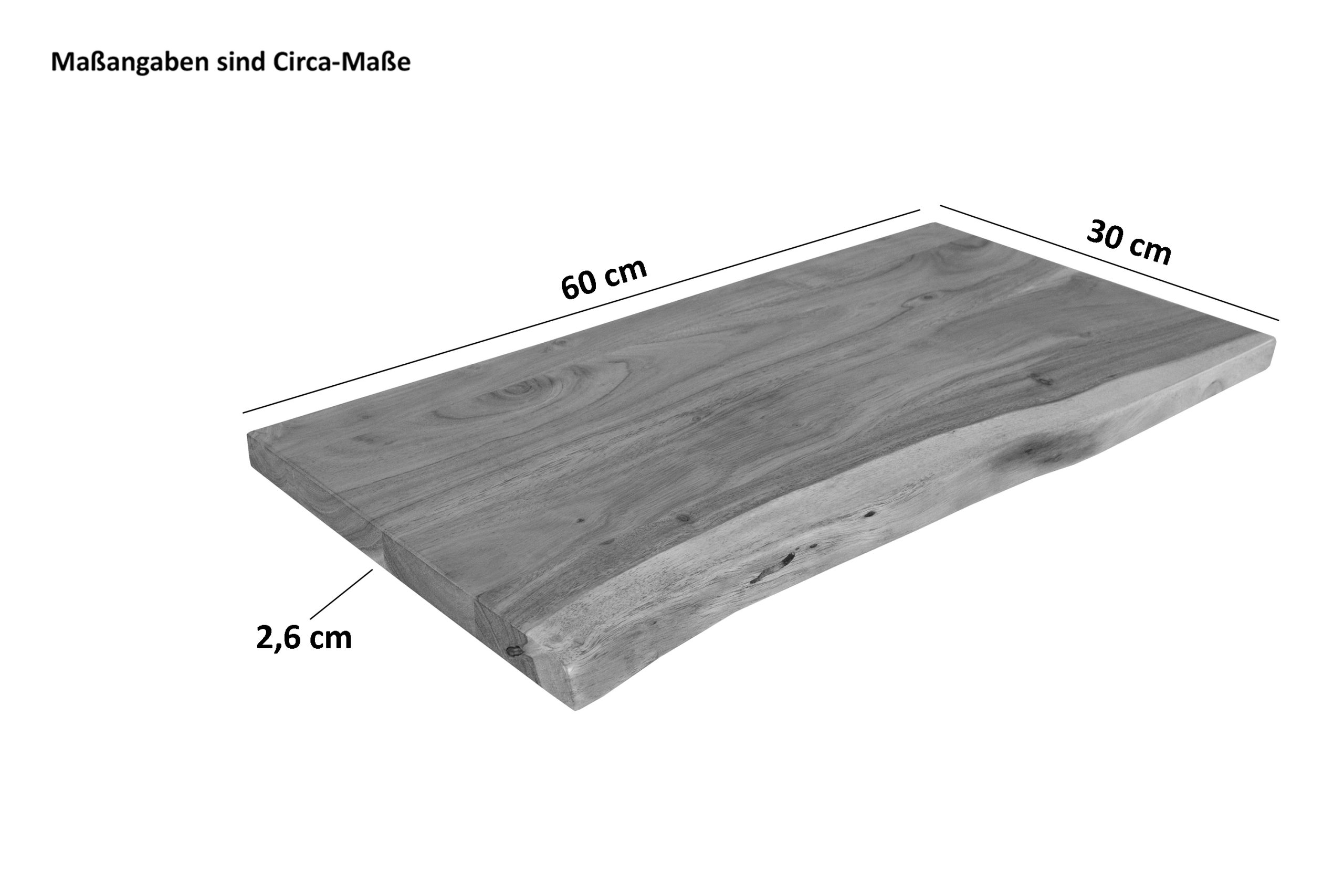 Holzplatte Arya mit echter Baumkante (einseitig), 60 x 30 cm, Akazienholz eichefarben, massiv & lackiert