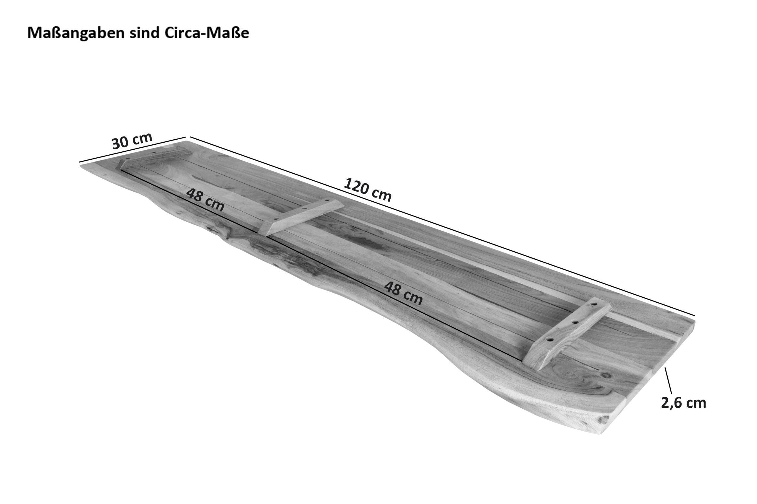 Holzplatte Arya mit echter Baumkante (einseitig), 120 x 30 cm, Akazienholz naturfarben, massiv & lackiert