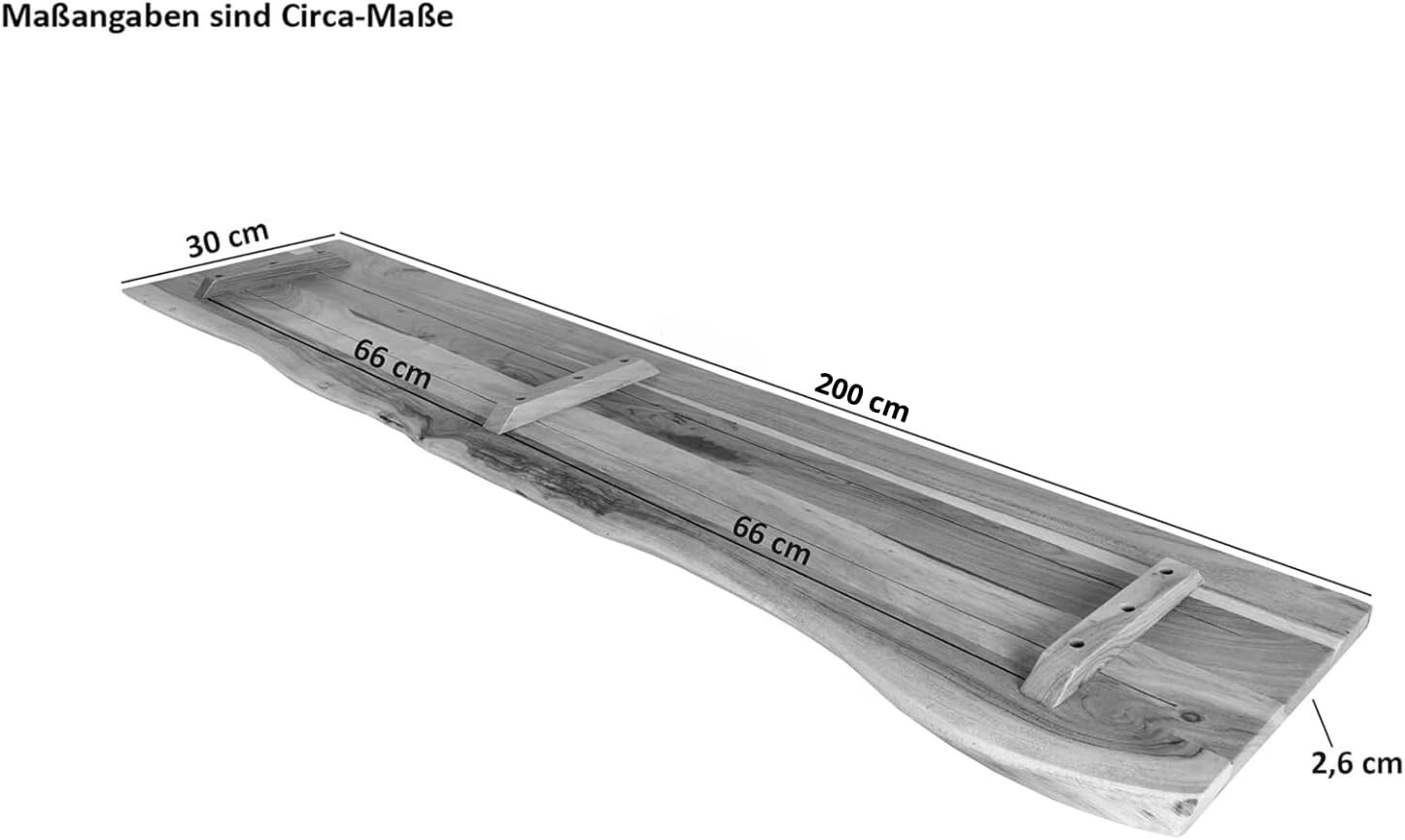 Holzplatte Akazienholz natur massiv 200×30 cm Holzbrett einseitige Baumkante ARYA