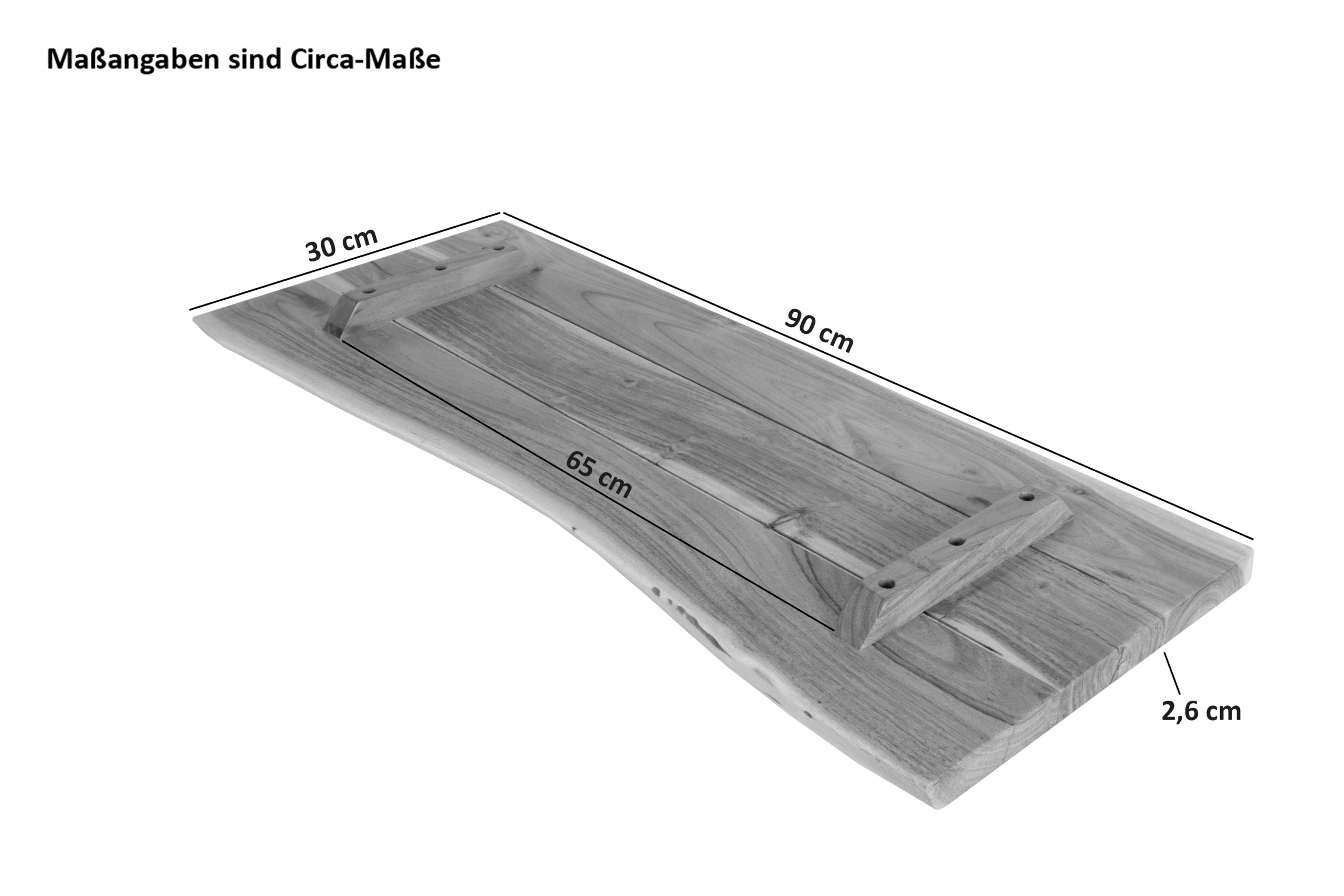 Holzplatte Arya mit echter Baumkante (einseitig), 90 x 30 cm, Akazienholz naturfarben, massiv & lackiert