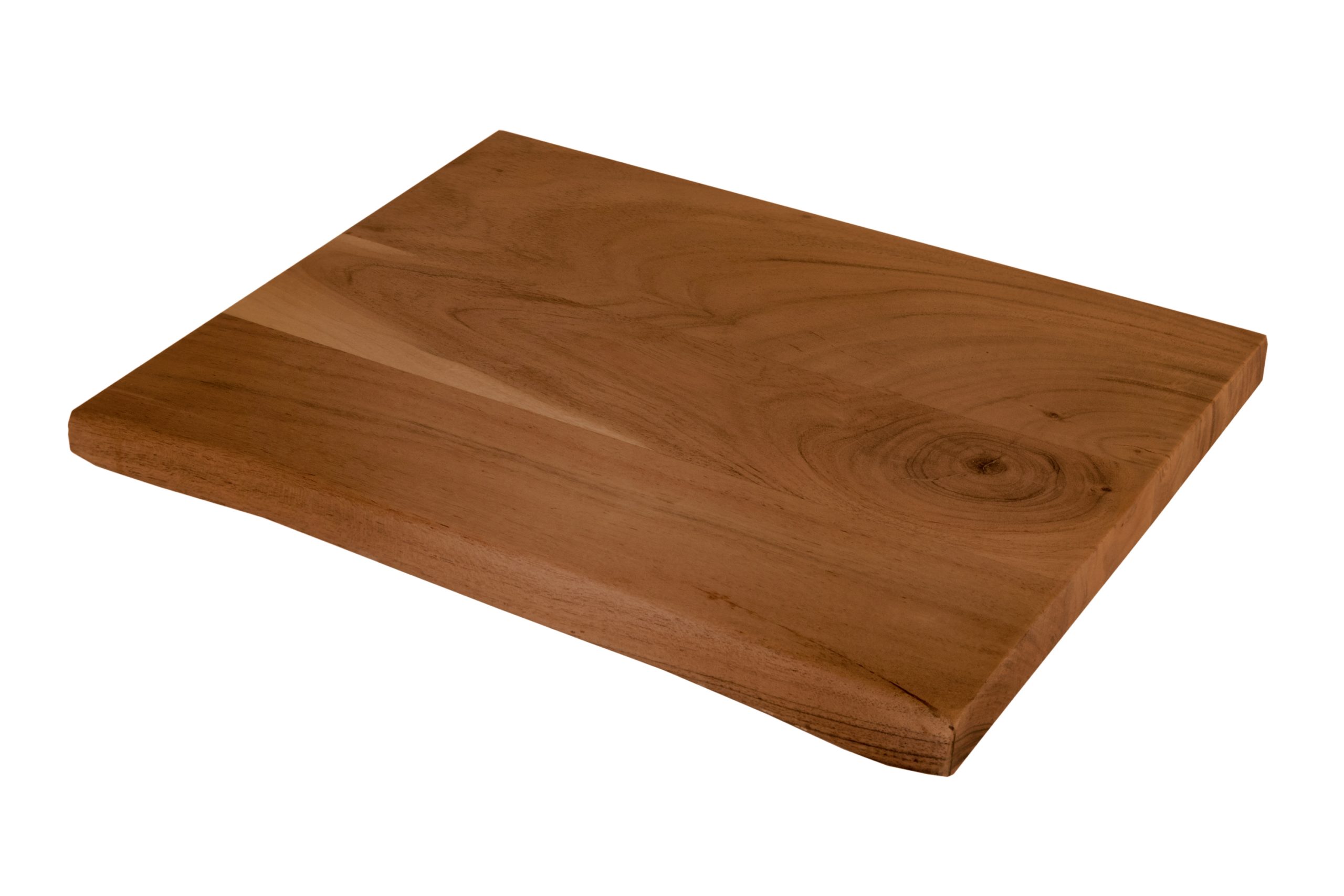 - Die 40 x 30 cm große Holzplatte ist aus massiver Akazie gefertigt. Die Platte besitzt eine einseitige echte Baumkante, welche die Schönheit des Holzbretts unterstreicht.