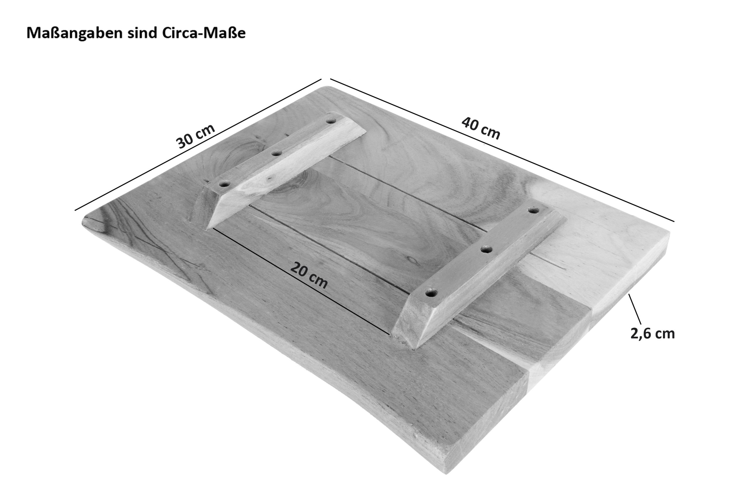 - Gesamtlänge: ca. 40 cm | Gesamtbreite: ca. 30 cm | Stärke der Tischplatte: ca. 26 mm