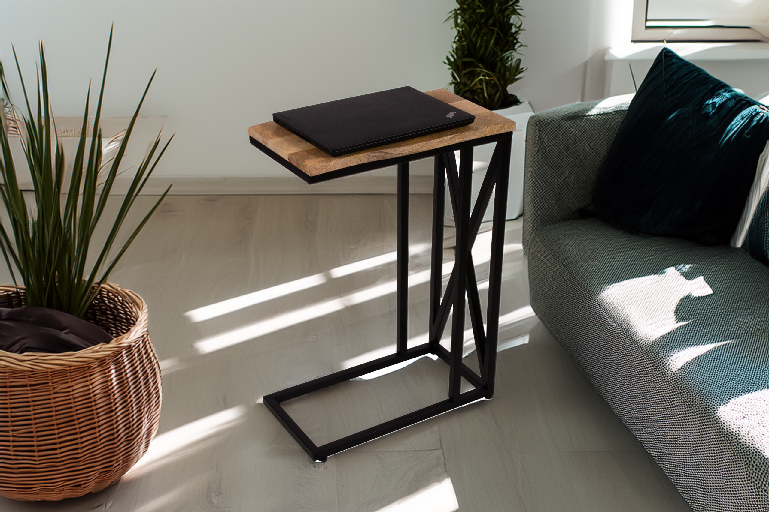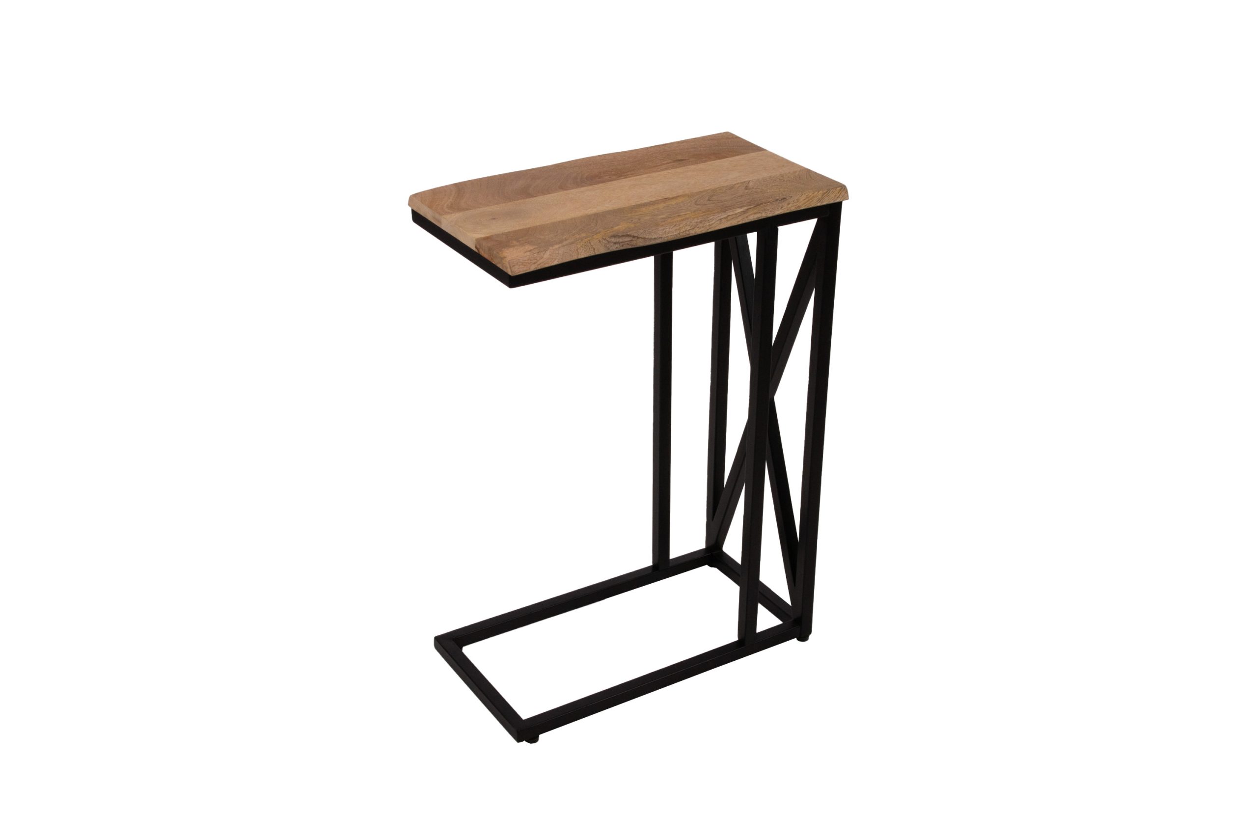 Laptoptisch Granada, Beistelltisch mit schwarzem Metallgestell, 47,5x27x67,5 cm, Mangoholz massiv